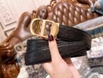 DIOR’s classic D-buckle black belt shows the wearer’s extraordinary taste with low-key luxury. The belt is made of high-quality leather, and the black tone exudes a deep and elegant atmosphere, highlighting the unique temperament of the wearer. The metal “CD” buckle design is the classic symbol of the DIOR brand. It shines brightly and highlights the nobility and fashion of the brand.