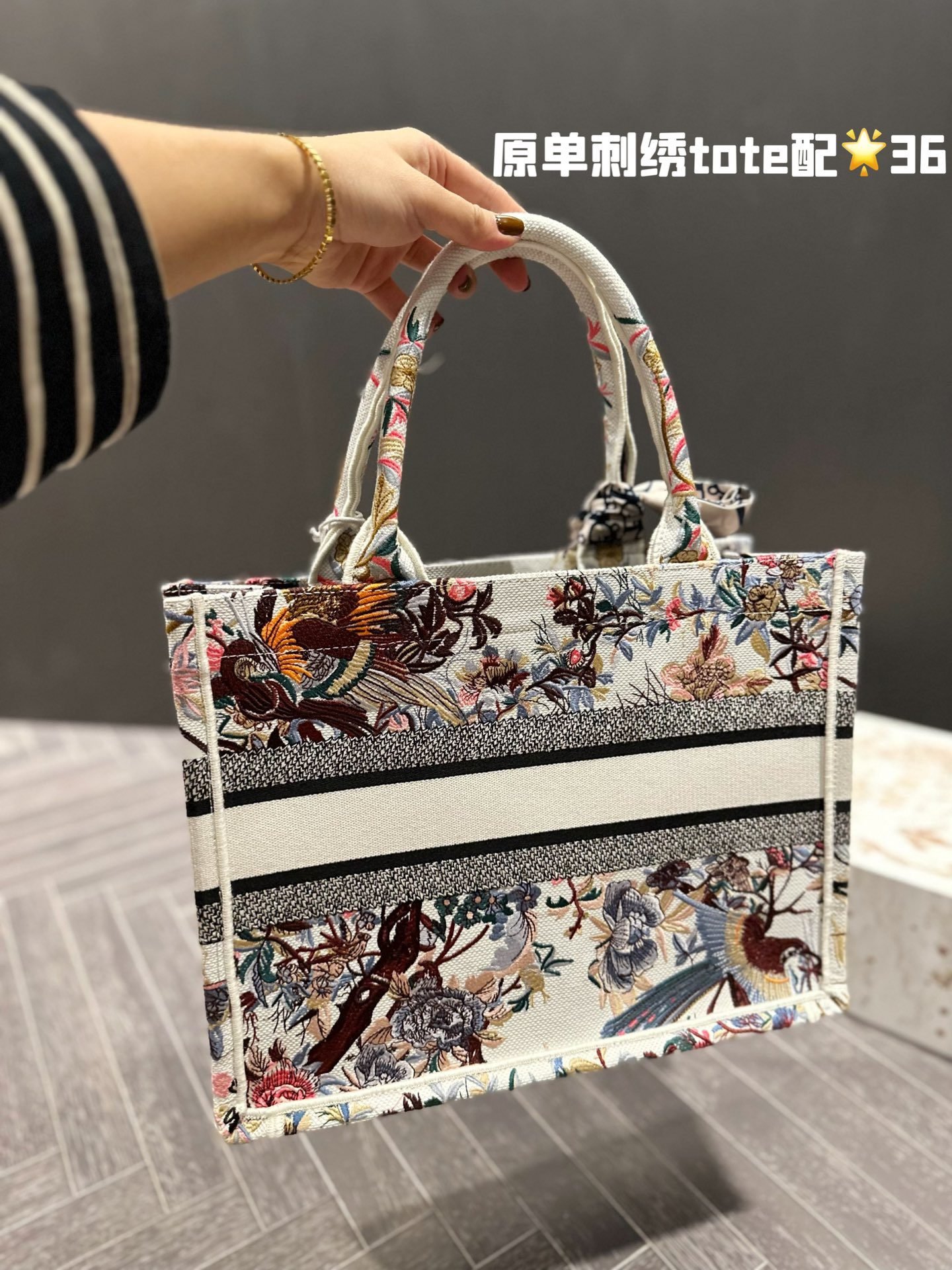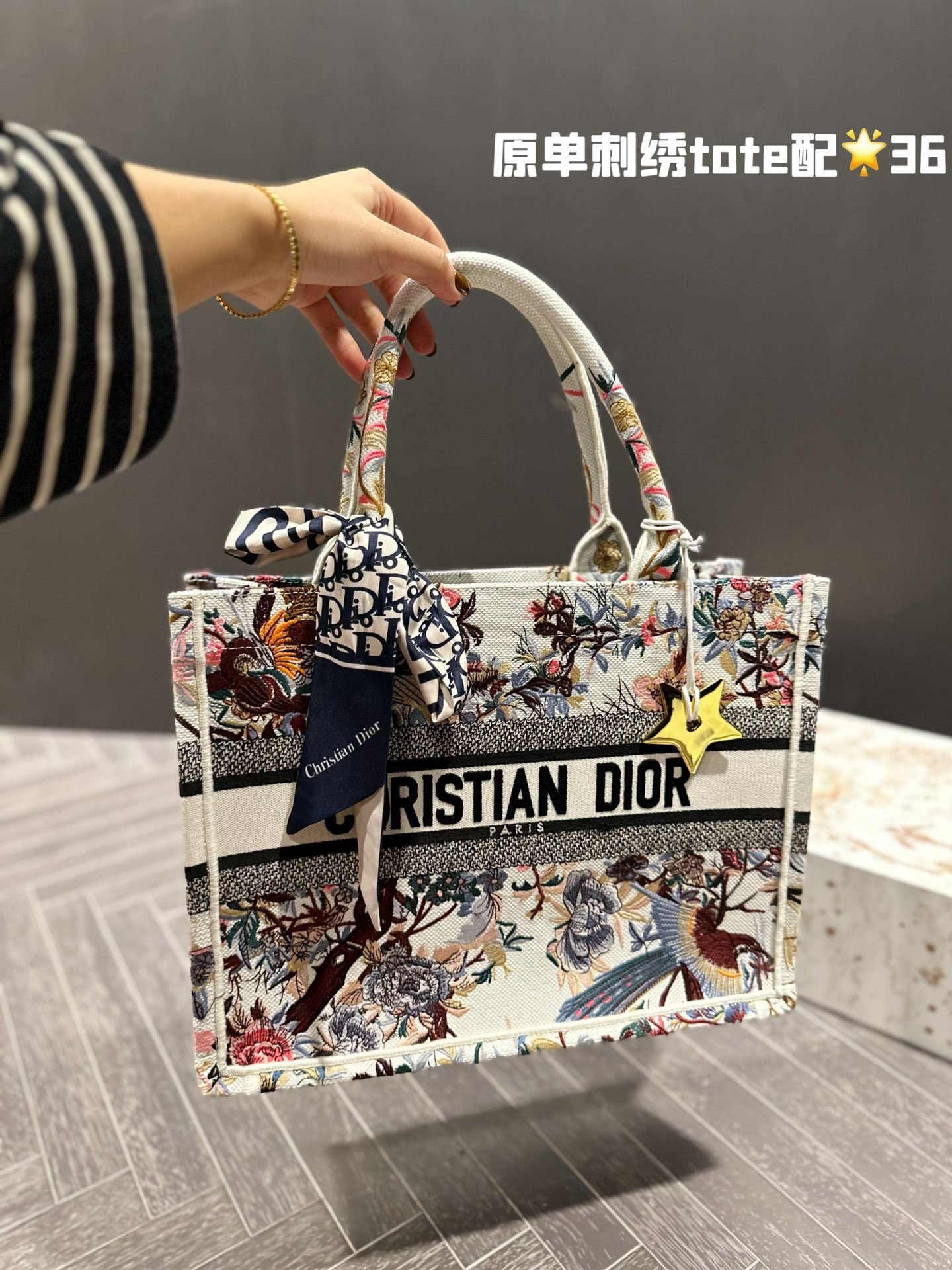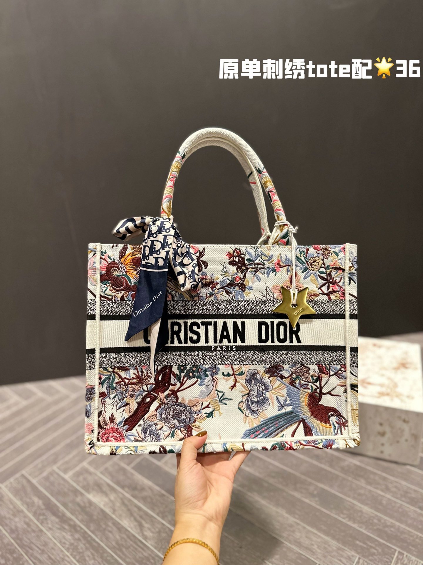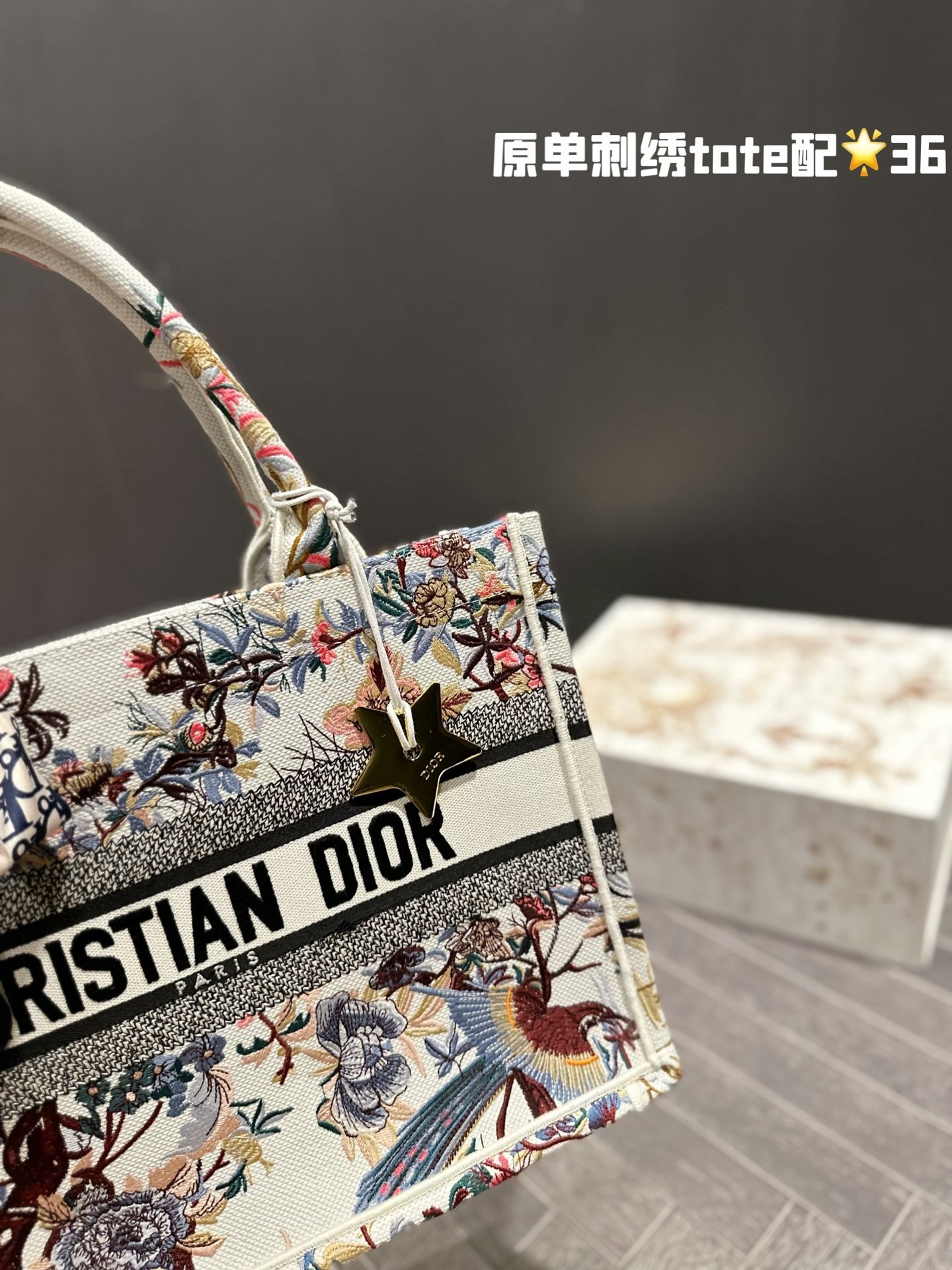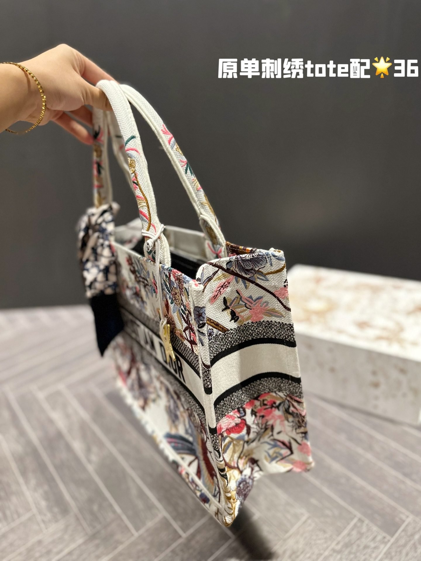 Dior embroidery tote bag size: 36cm