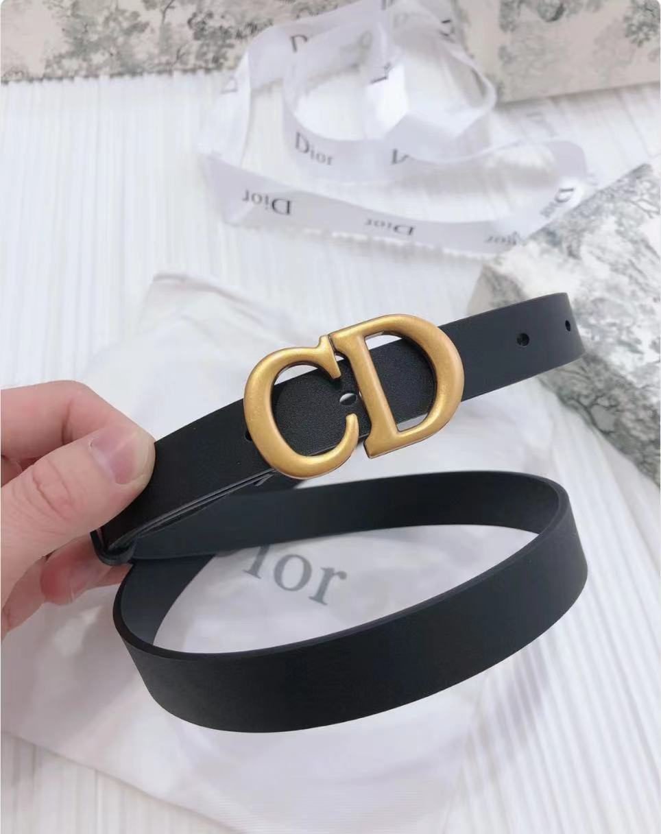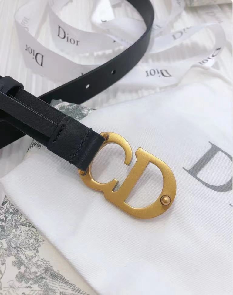 Dior gold D buckle black belt, simple and elegant, noble and elegant