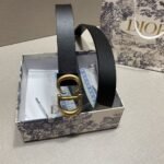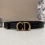 Dior gold D buckle black belt interprets the unique charm of the Dior brand with minimalist lines and excellent quality. The belt is made of top-grade black leather and has been treated with exquisite craftsmanship. The surface is smooth and delicate, and it feels soft and comfortable to the touch. The golden buckle is engraved with Dior’s iconic “DC”, showing nobility and taste.