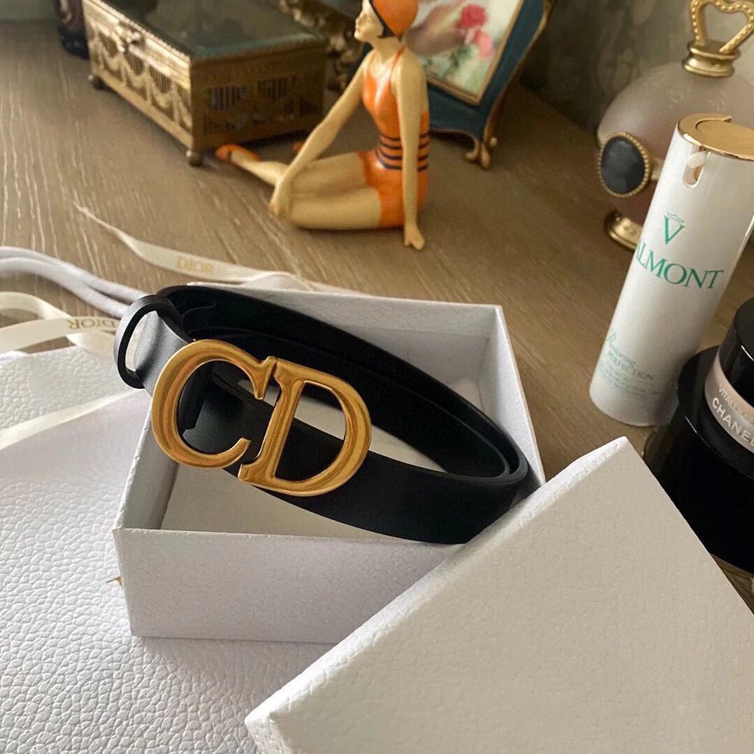 Home Belt DIOR Belt Dior gold D buckle black belt, simple and elegant, refined and elegant