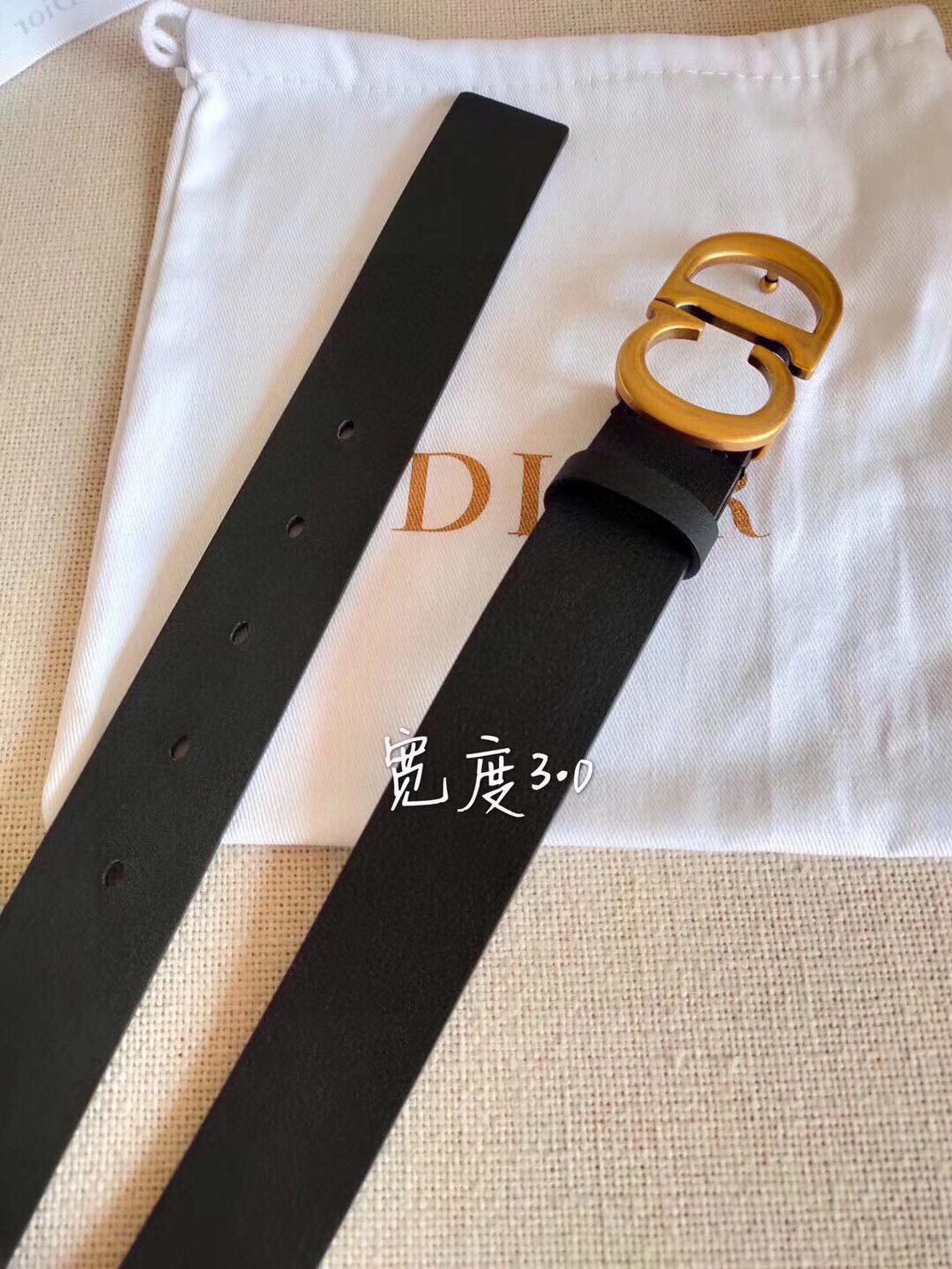 Dior gold D buckle black belt, simple and elegant, refined and elegant