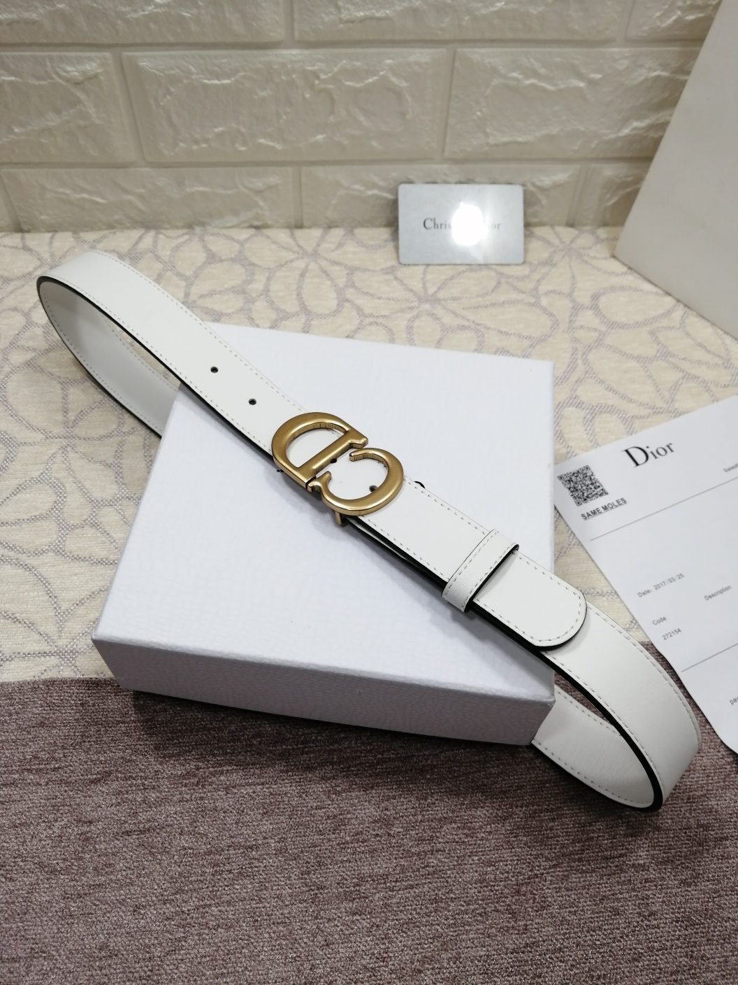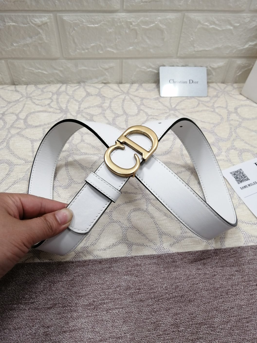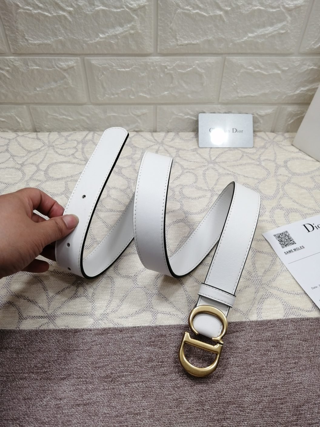 Home Belt DIOR Belt Dior gold D-shaped buckle with white belt, simple and elegant, low-key and luxurious