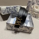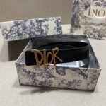 Dior’s luxurious black leather gold buckle belt is based on top-grade black leather, showing unparalleled elegance and texture. Every part of the belt has been carefully selected and polished, giving it a warm luster and soft and delicate touch. Paired with exquisite golden metal fasteners, engraved with the classic words “DIOR”, it shows nobility and taste. This belt is not only a fashion accessory, but also a symbol of identity and status.