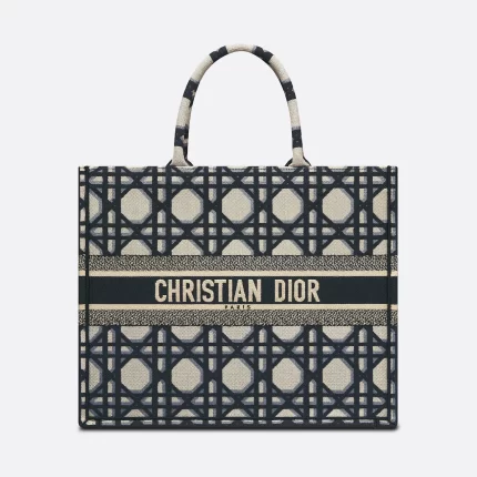 DIOR / LARGE DIOR BOOK TOTE Beige and Blue Macrocannage Embroidery (42 x 35 x 18.5 cm)