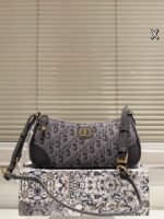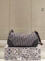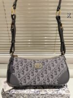 This Dior shoulder bag showcases the iconic Oblique monogram pattern, featuring signature gold CD hardware, a retro-inspired silhouette, and a size of 26×11cm in a sophisticated gray and black combination. Embodying Dior’s legacy of timeless design and meticulous craftsmanship, this bag merges vintage charm with modern functionality. Perfect for those who appreciate a fusion of iconic branding, textured fabric, and versatile styling, it makes a refined statement suitable for any occasion, from daily outings to fashion-forward events.