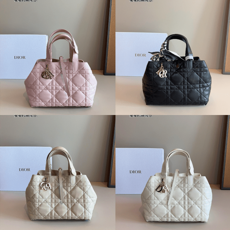 This Dior quilted leather top handle bag showcases the iconic Cannage pattern, featuring signature metal charms, a versatile top handle design, and a size of 26×15×19cm in elegant hues including pink, black, and beige. Embodying Dior’s legacy of luxurious craftsmanship and timeless elegance, this bag merges classic detailing with modern versatility. Perfect for those who appreciate a fusion of tactile leather, iconic branding, and refined styling, it makes a sophisticated statement suitable for any occasion, from daily outings to upscale events.