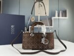 Dior satin diamond-encrusted Princess Diana bag brown 2320 size: 26*13*6cm