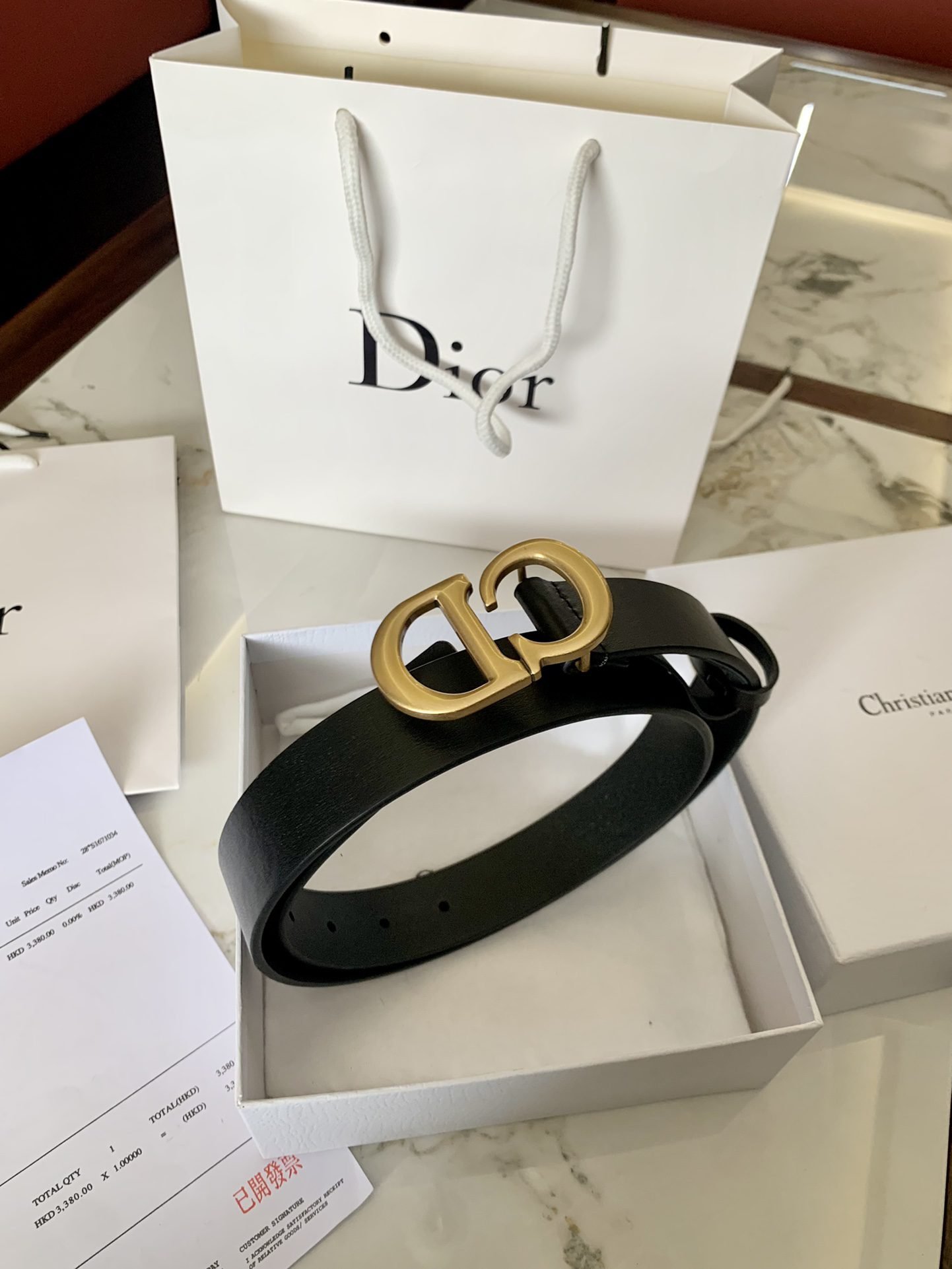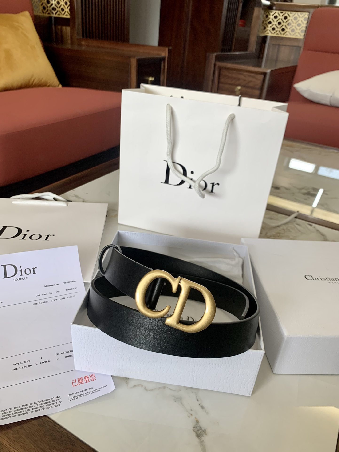 Home Belt DIOR Belt Dior width 3CM gold D-buckle black belt is simple, atmospheric, exquisite, and elegant