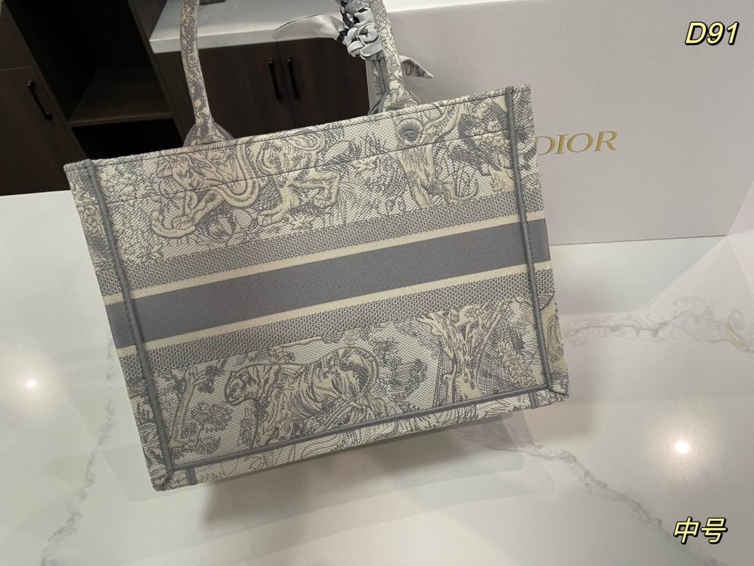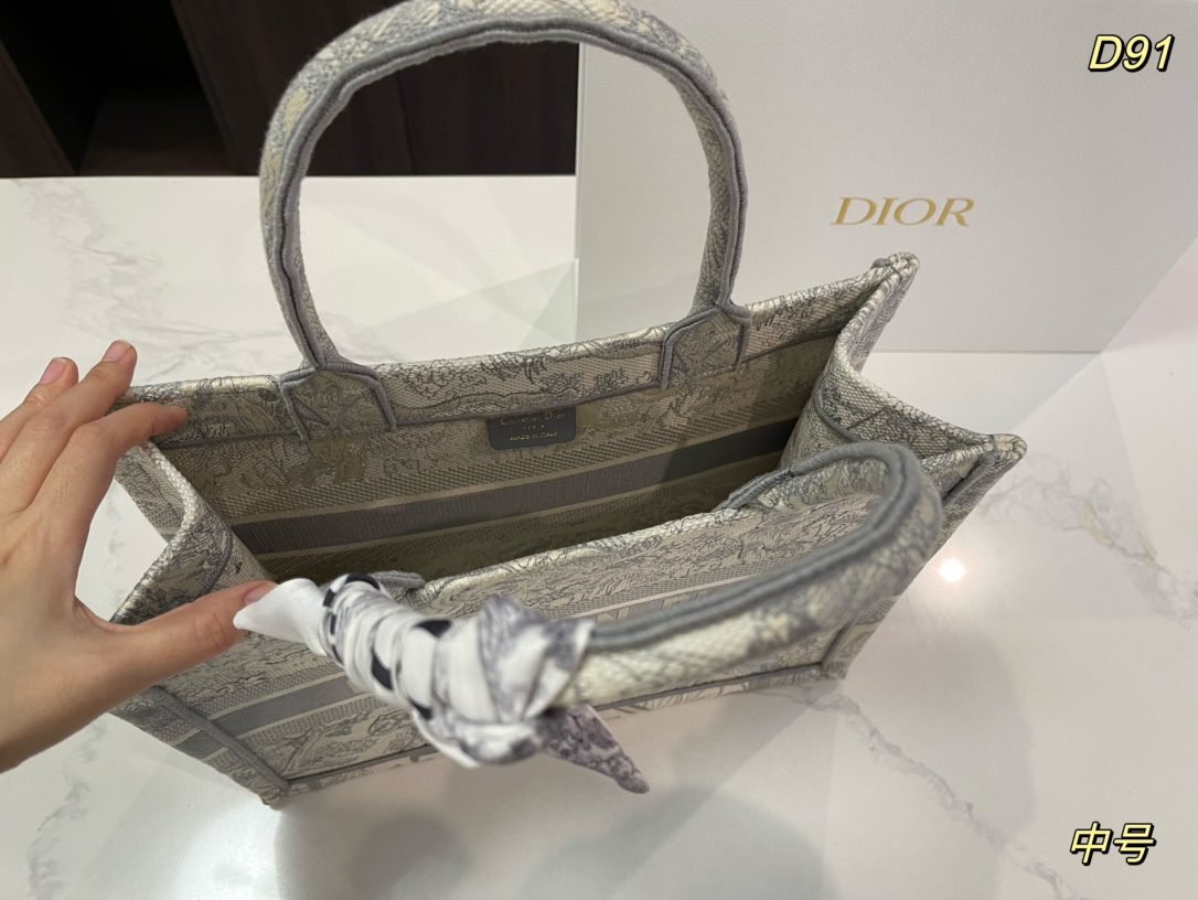 Home BAGS DIOR-BAG Fashionable and versatile jacquard white tote bag shopping bag, small size exquisite and stylish