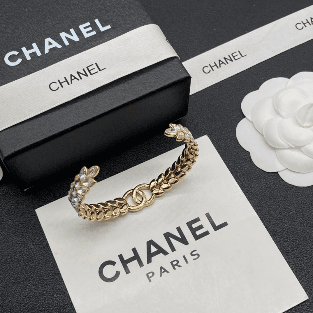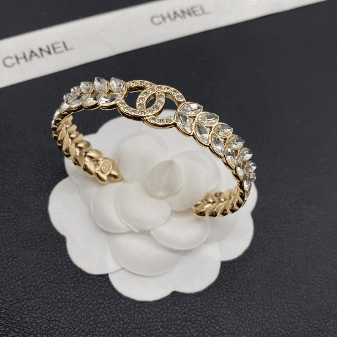 Home JEWELRY Chanel CHANEL Bracelet Fashionable temperament, niche and shining, leaf shaped zircon inlaid with gold opening bracelet
