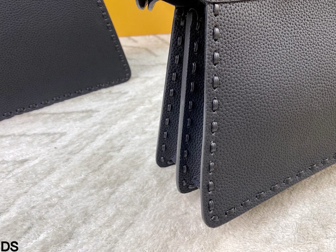 This Fendi Peekaboo mini bag set features premium leather craftsmanship, signature metal hardware, and a coordinating scarf. Available in two sizes (large:27×21cm, small:23×18cm) in a timeless black hue, these bags embody Fendi’s legacy of sophisticated design and meticulous detailing. Merging classic elegance with versatile styling, they are perfect for those who appreciate a fusion of iconic branding, tactile leather, and coordinated accessories, making a refined statement suitable for any occasion, from daily outings to upscale events.