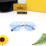 The lens design of this sunglasses is particularly unique, prominently showcasing the FENDI brand trademark and adopting a camouflage logo style. This design is not only fashionable and avant-garde, but also provides a novel and eye-catching appearance for the wearer. In addition to its eye-catching exterior design, this pair of sunglasses also emphasizes comfort and durability. Its material selection is high-quality, lightweight and durable, providing wearers with a comfortable wearing experience for a long time.