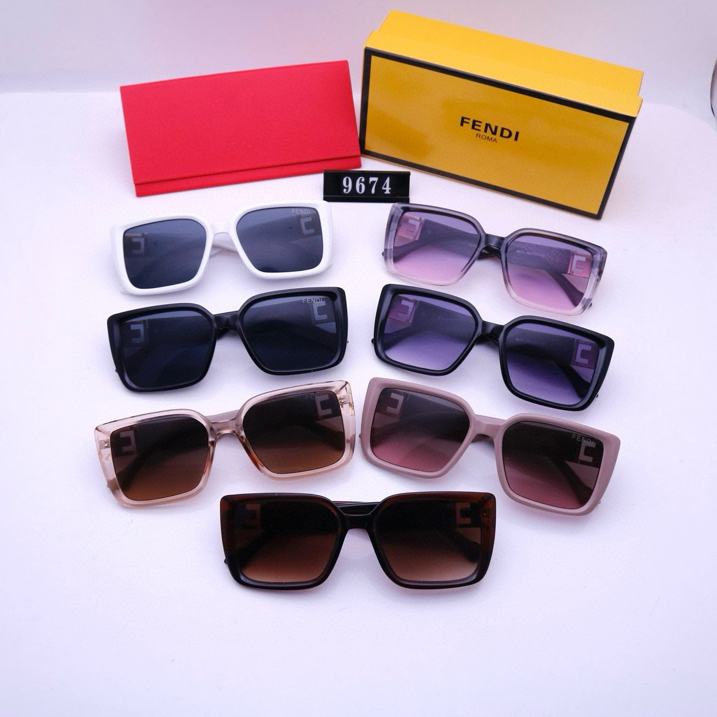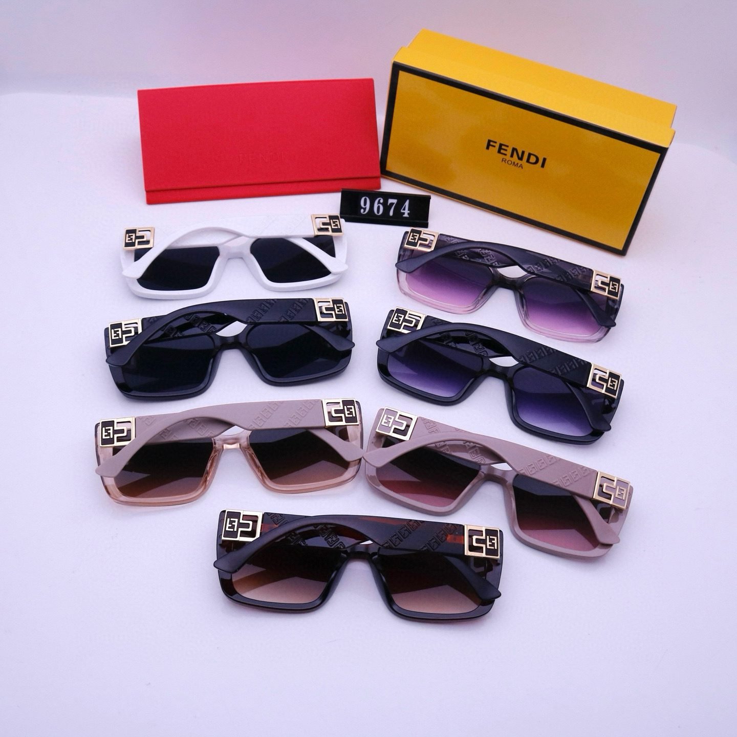 Elevate your style with Fendi Sunglasses 9674. Featuring striking square frames and the iconic Fendi logo detailing, these sunglasses come in a variety of vivid color combinations. From classic blacks to soft pastels and gradient hues, each pair exudes confidence and luxury. Paired with the signature Fendi packaging, they’re the perfect accessory to make a fashion statement, whether you’re soaking up the sun or attending a chic event.