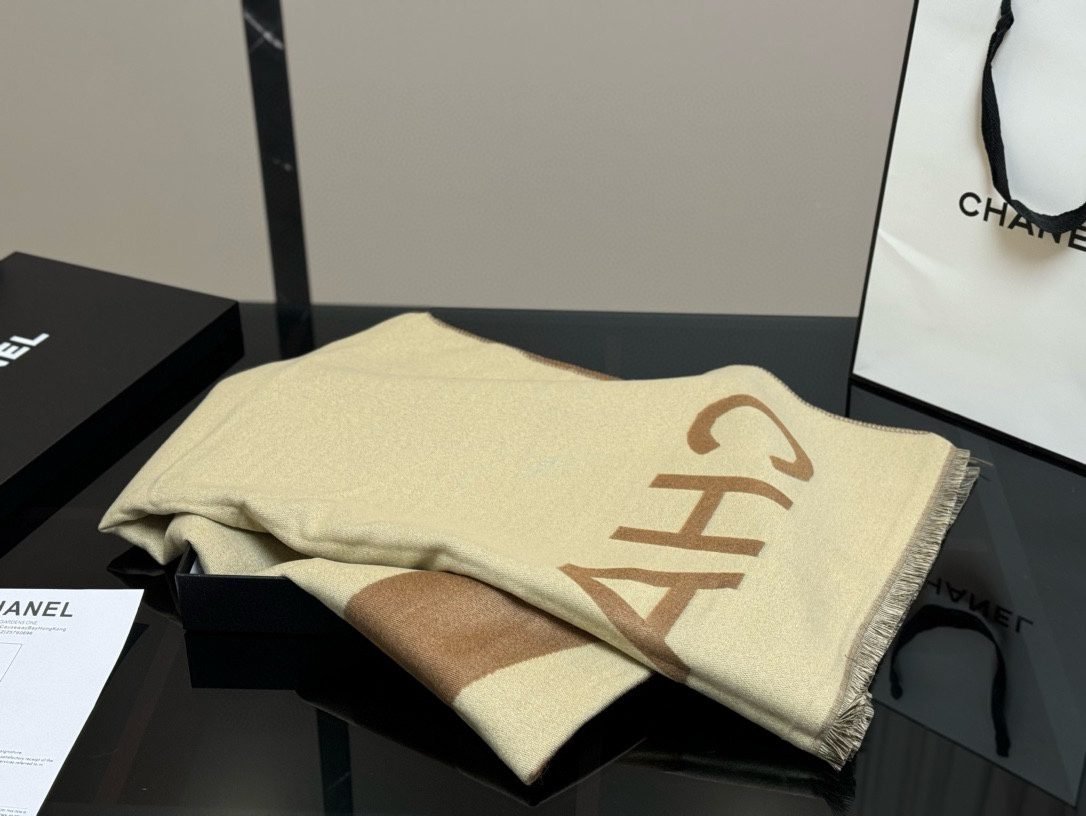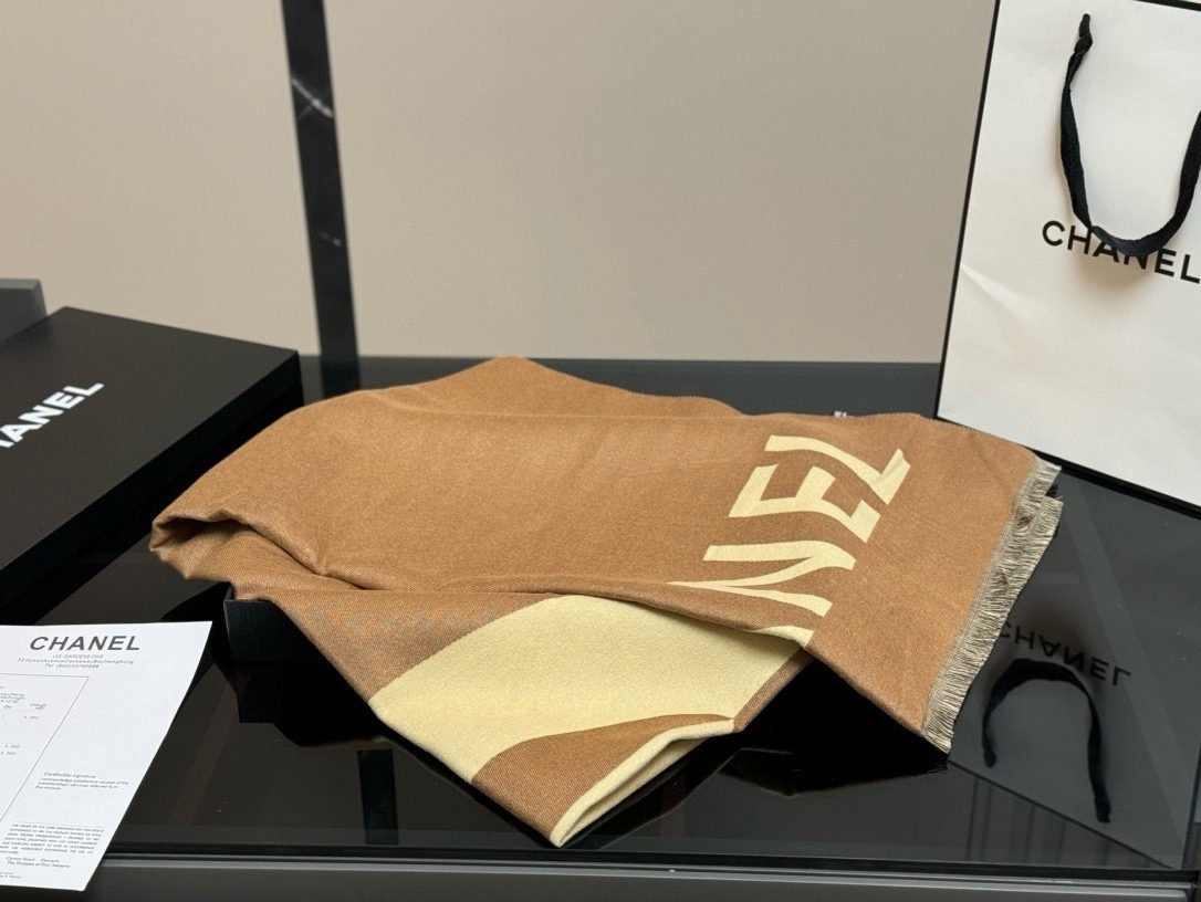 Gift bag with box size:45*190cm Cool down! I really need a scarf at night ???? Chanel Ace Scarf ????