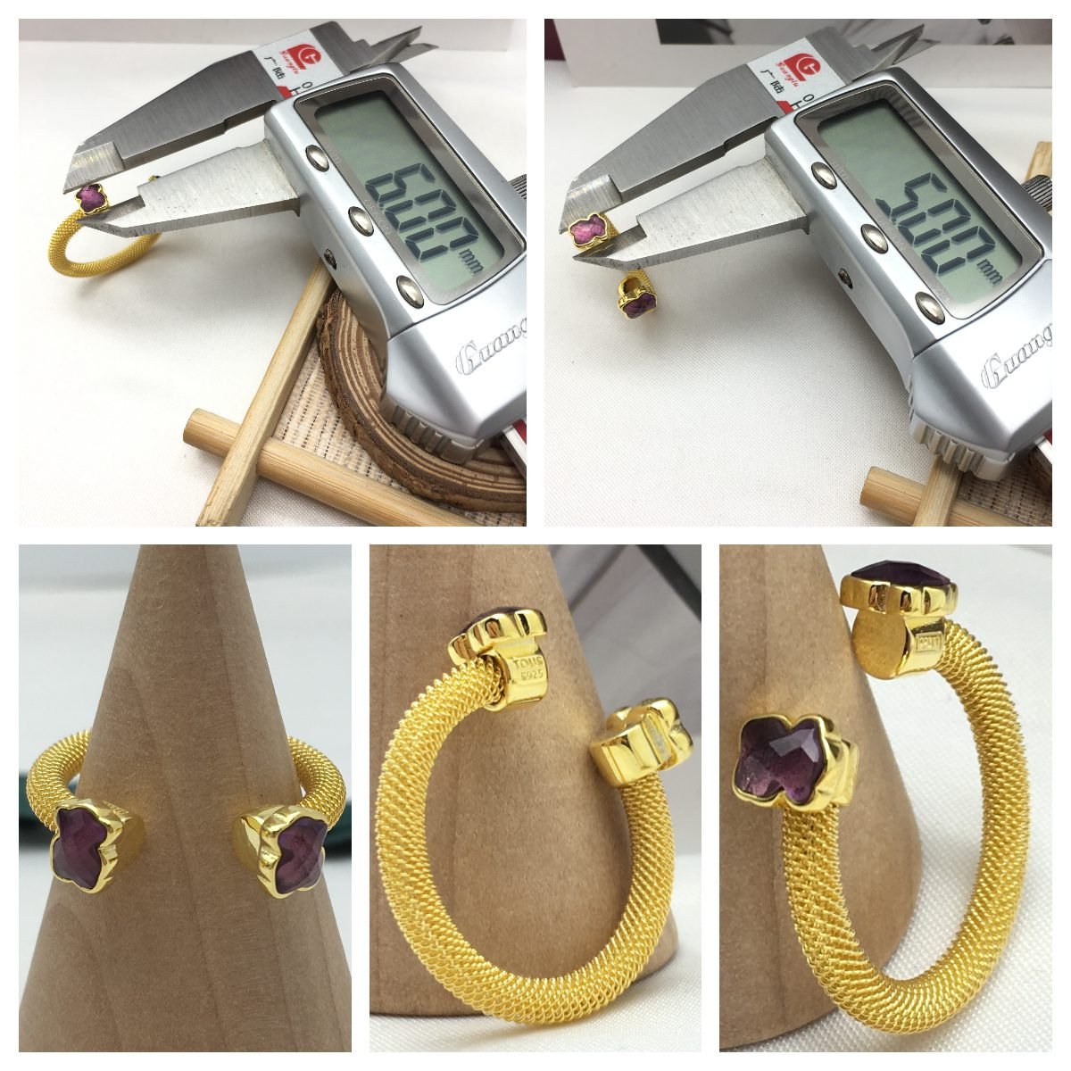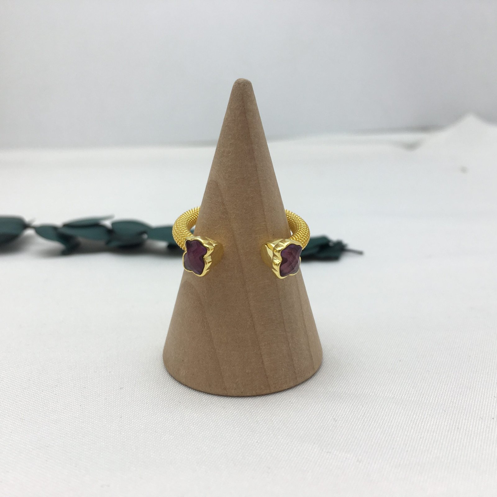 Be the first to review “Gold-colored IP Steel Mesh Color open Ring with Amethyst” Cancel reply