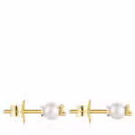 Gold Earrings with cultured pearl and bear charm Bold Bear