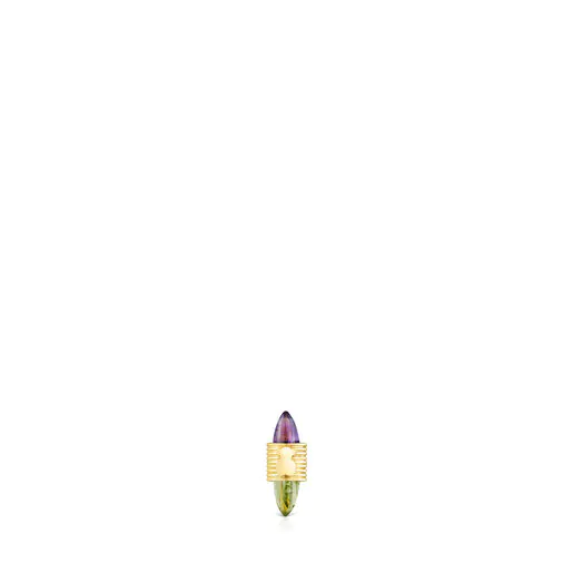 Color, attitude and loads of personality in this gold and gemstones earring with gemstones from the Lure collection. Minimalist and symmetrical designs that recreate elements of the natural world and fishing.