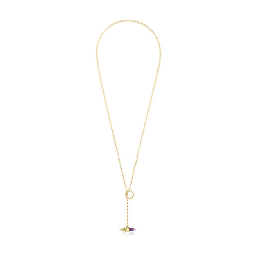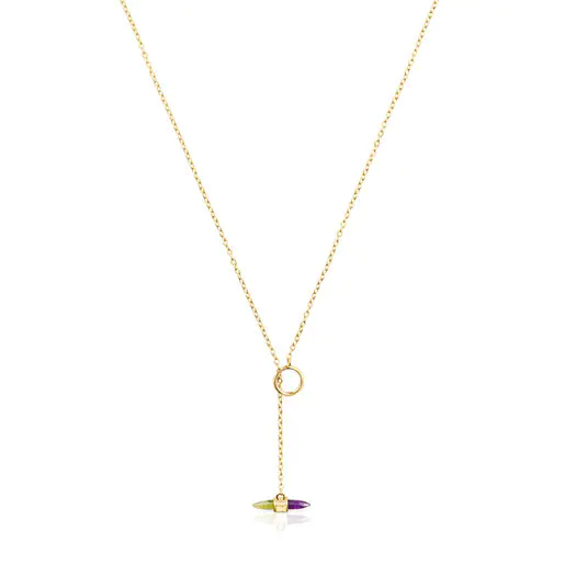 Color, attitude and loads of personality in this gold and gemstones necklace from the Lure collection. Minimalist and symmetrical designs that recreate elements of the natural world and fishing.