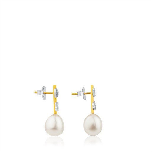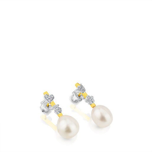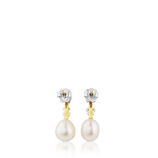 TOUS Gold Puppies earrings in 18kt white and yellow gold, cultured freshwater pearls and diamonds. Total weight 0.12ct.