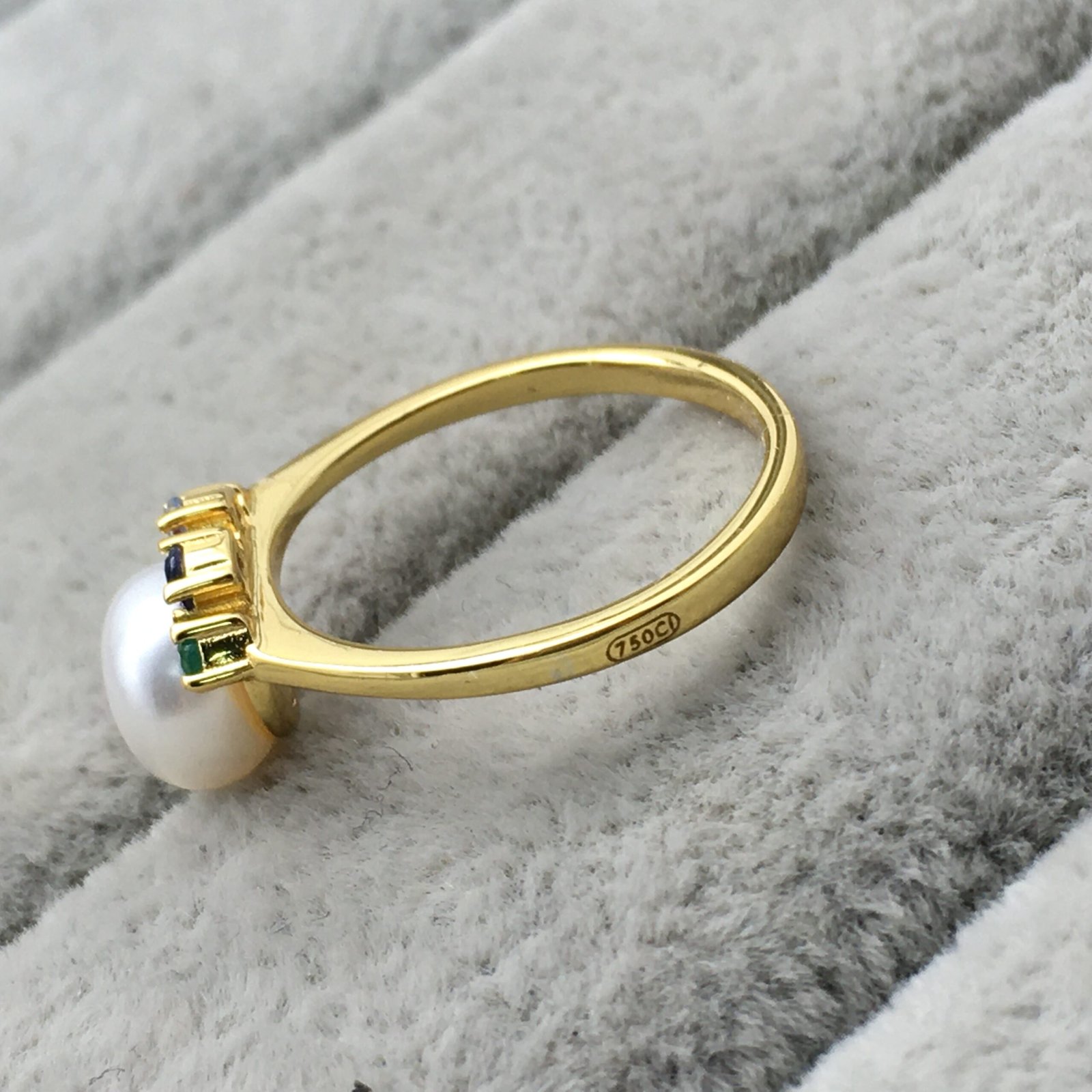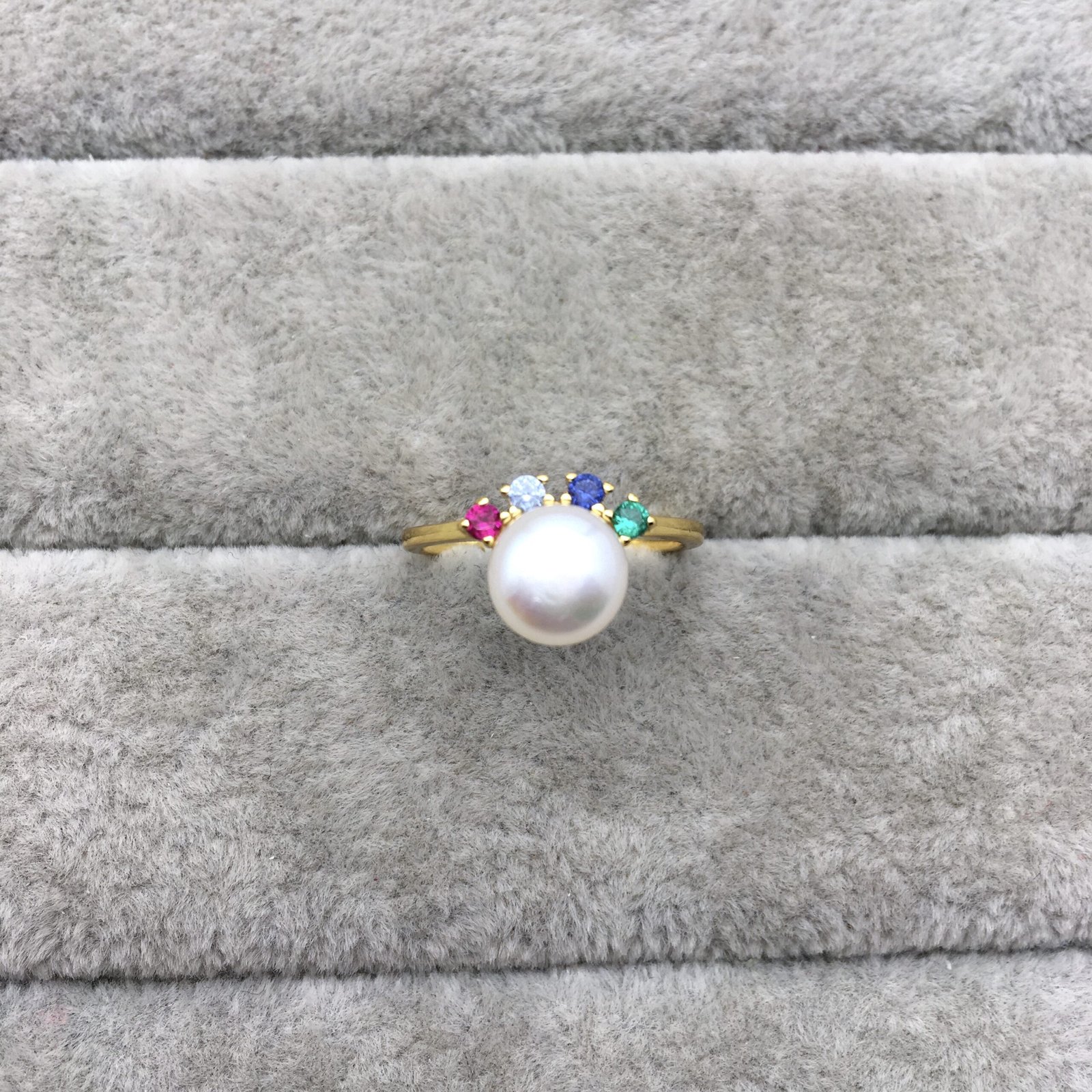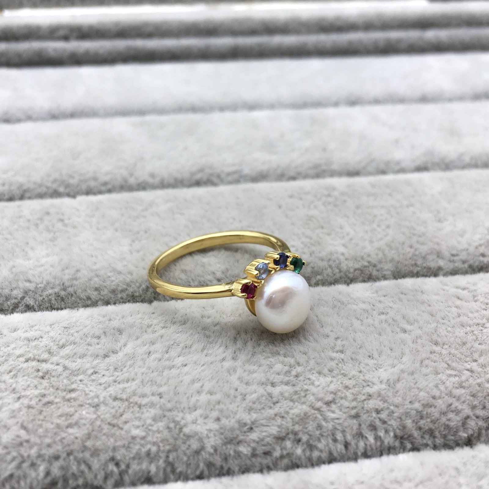 Gold Real Sisy Ring with small Pearl and Gemstones