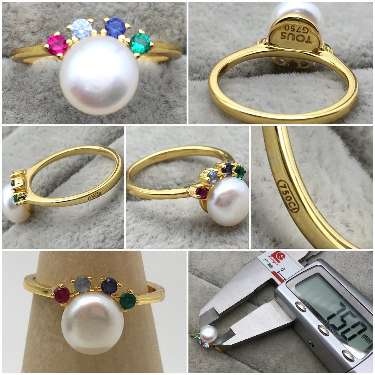 TOUS Real Sisy ring in 18kt yellow gold with 0.7-cm pearl and ruby, blue topaz, iolite, chrome diopside and 0.2-cm garnet.