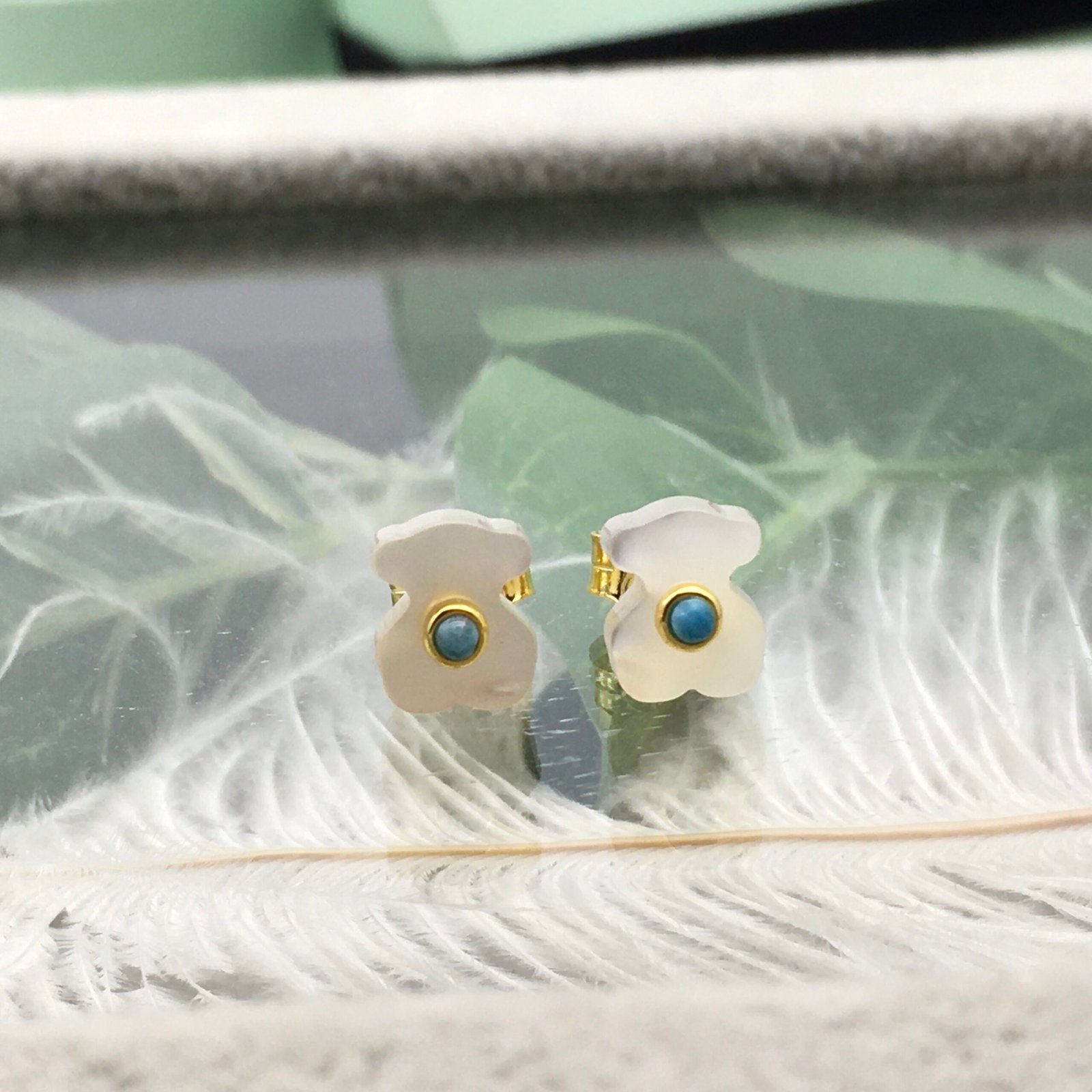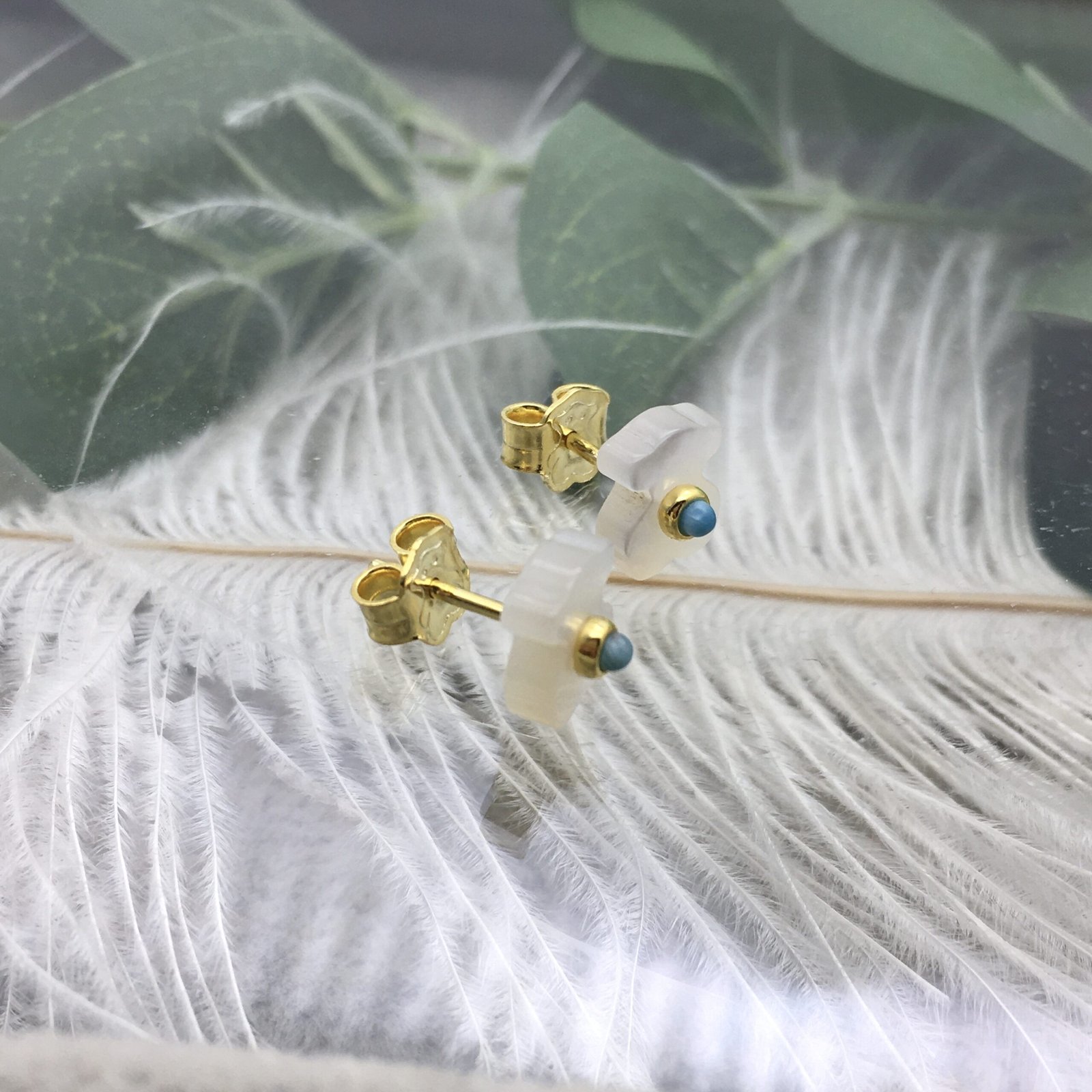 Be the first to review “Gold Super Power Earrings with Mother-of-pearl and Amazonite” Cancel reply