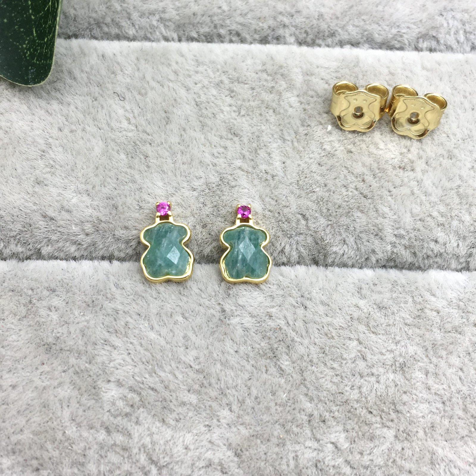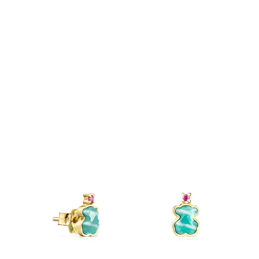 Gold TOUS Color Earrings with Amazonite and Ruby