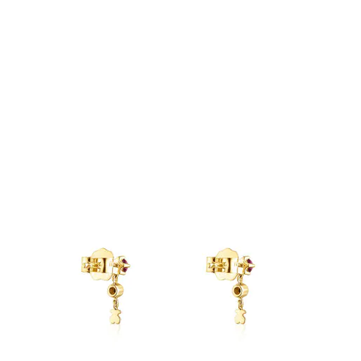 Gold TOUS Cool Joy Earrings with rhodolite, chrome diopside and bear motif