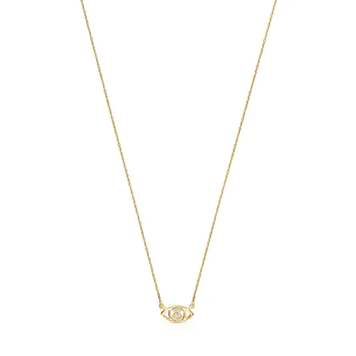 Gold TOUS Good Vibes eye Necklace with Diamonds