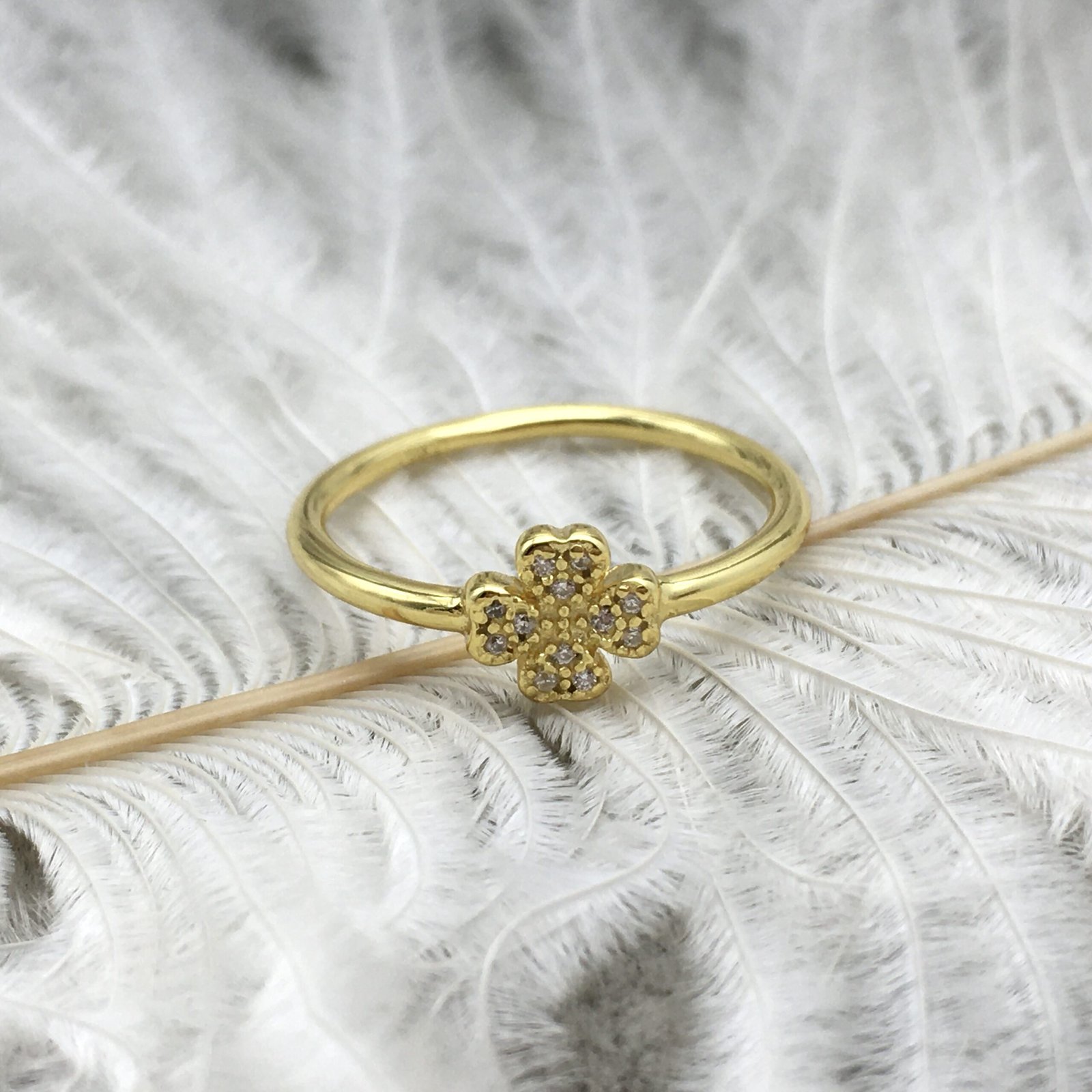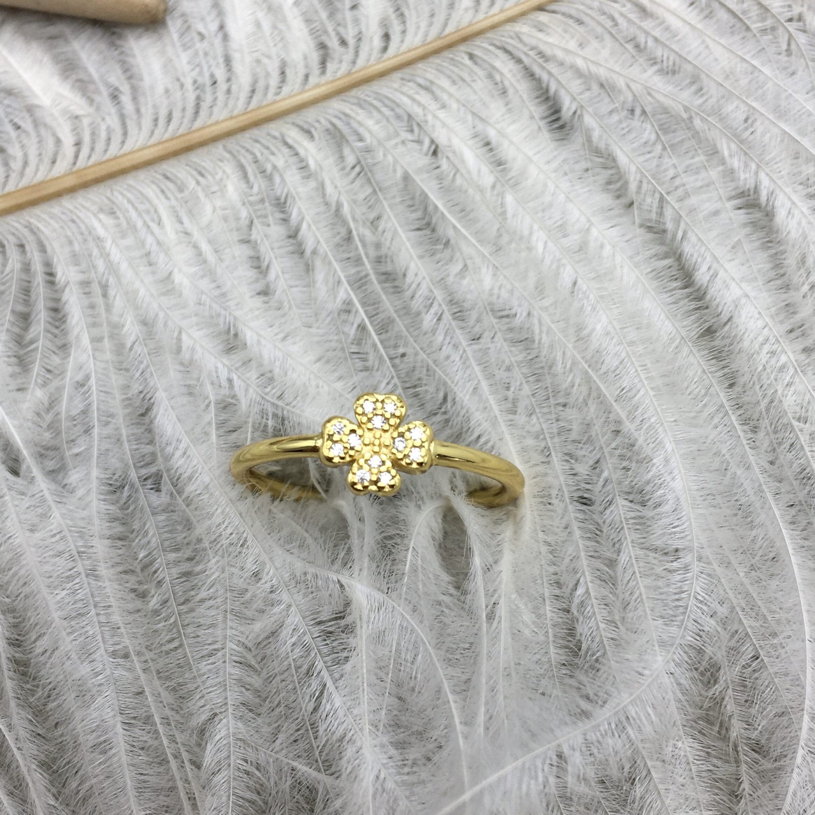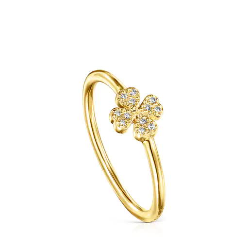 Gold TOUS Good Vibes Ring with Diamonds clover motif