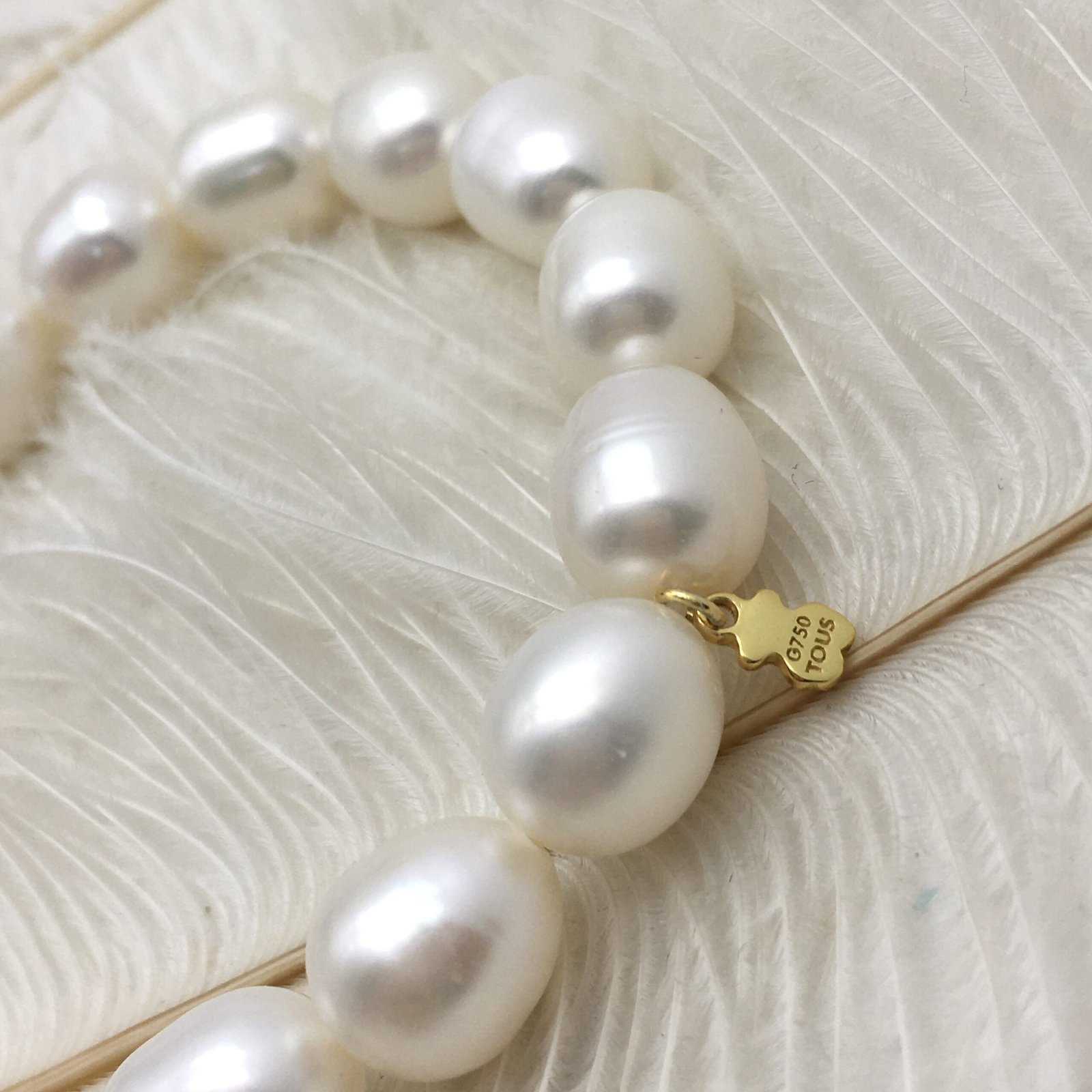 TOUS Pearls bracelet in yellow gold and white rice pearls. Length: 17.5 cm.
