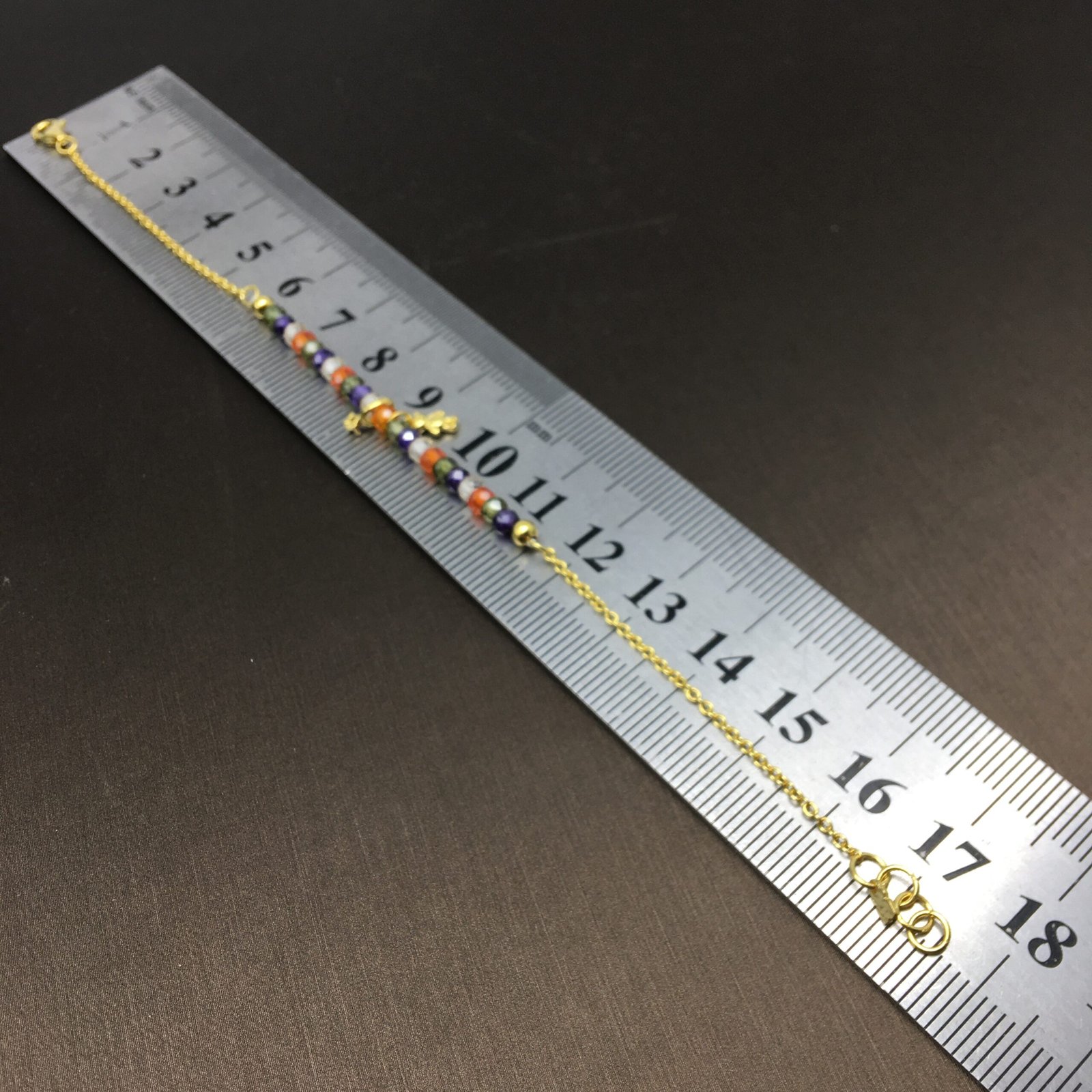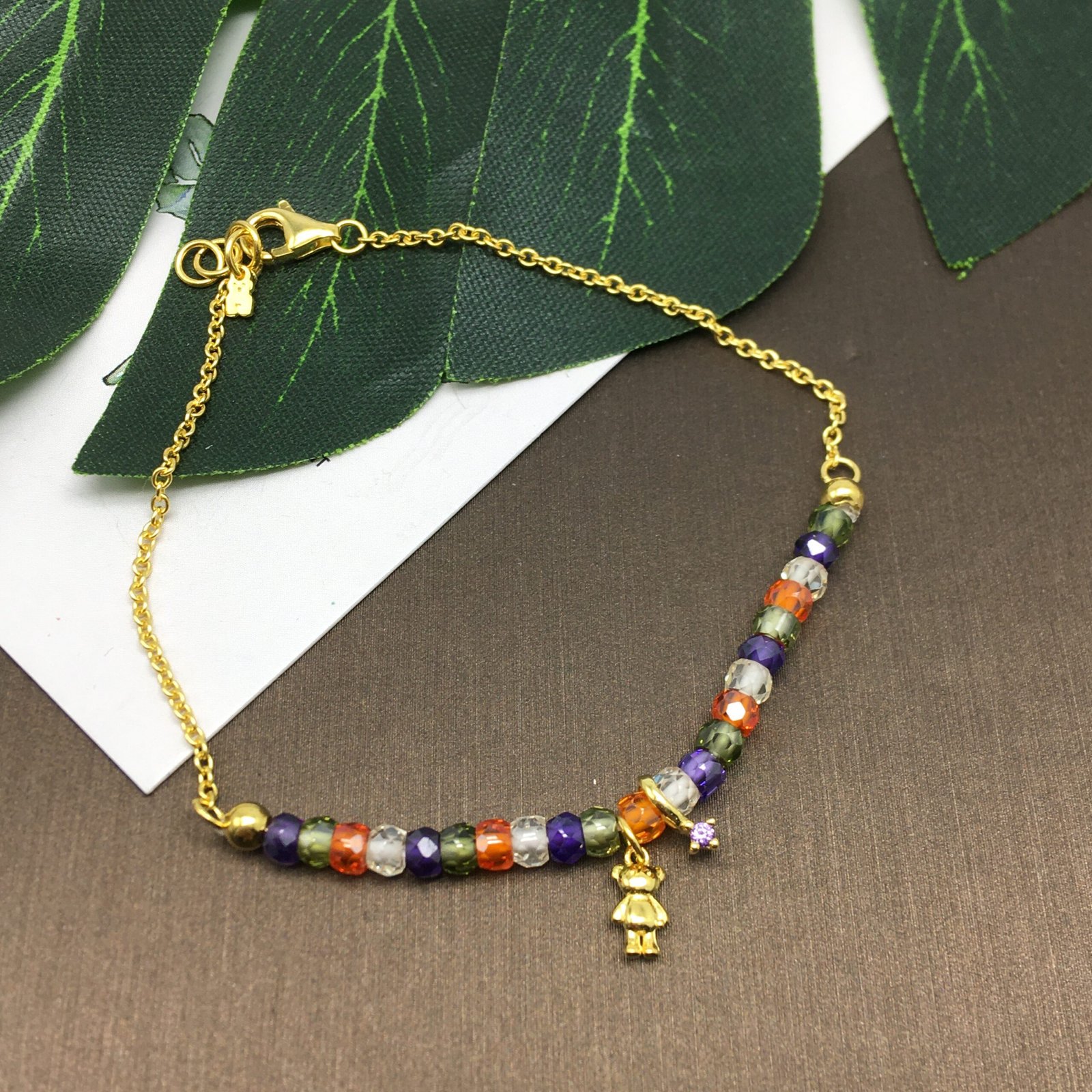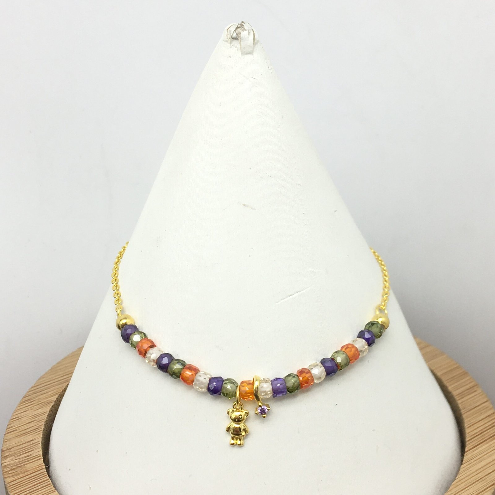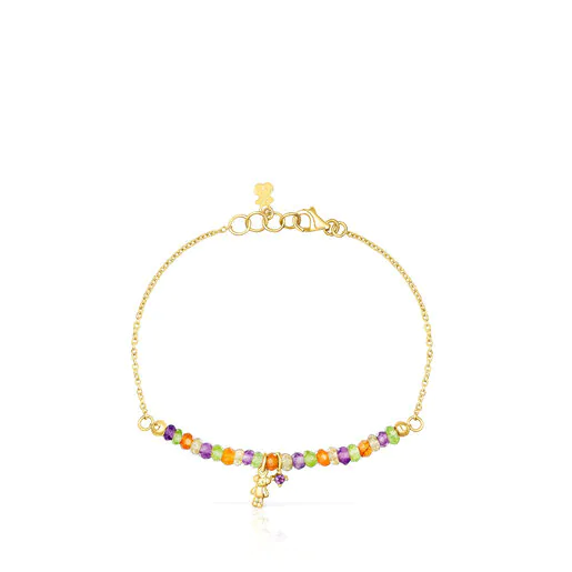 TOUS Teddy Bear bracelet in 18kt gold and amethyst, peridot, carnelian and citrine gemstones with an amethyst detail and a 6 mm bear motif in the center. Length: 17.5 cm.