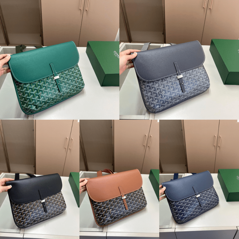 This Goyard messenger bag collection features the brand’s iconic chevron print, crafted with premium leather accents and a sleek flap closure. Available in a range of refined hues, it embodies Goyard’s legacy of artisanal luxury and functional design. With an adjustable shoulder strap and structured silhouette, this bag merges timeless style with everyday practicality. Perfect for those who appreciate iconic branding, meticulous craftsmanship, and versatile wear, it makes a sophisticated statement suitable for professional or casual settings.