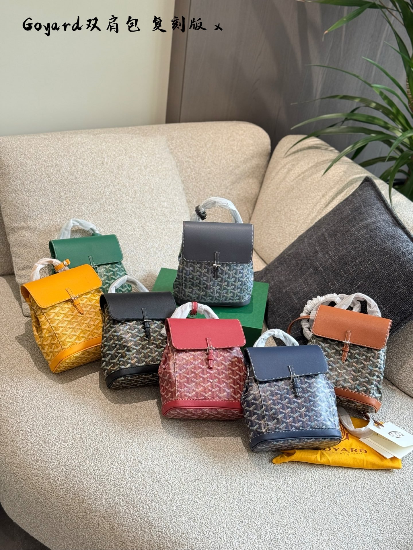 This Goyard mini backpack showcases the brand’s iconic chevron print, crafted with premium leather accents and a retro-inspired silhouette, measuring 23×9.5×19cm. Embodying Goyard’s legacy of artisanal luxury and functional design, it features adjustable shoulder straps and a secure flap closure. Available in a range of vibrant hues, this backpack merges timeless style with everyday practicality. Perfect for those who appreciate iconic branding, meticulous craftsmanship, and versatile wear, it makes a sophisticated statement suitable for daily outings or as a chic accessory.