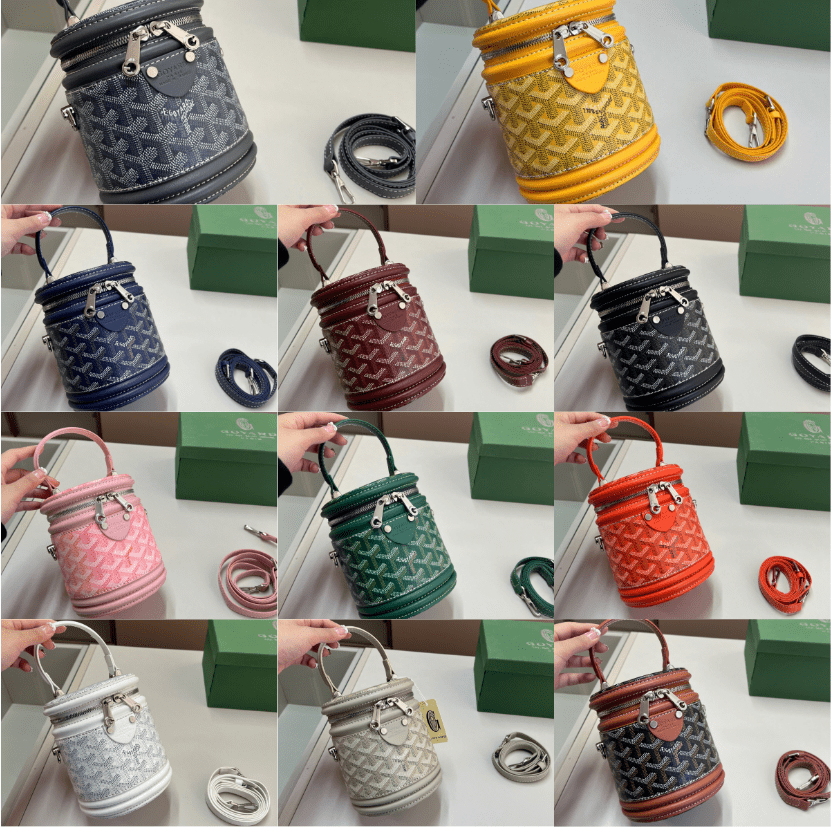 This Goyard mini bucket bag showcases the brand’s iconic chevron print, crafted with meticulous artisanal skill, featuring a cylindrical silhouette, secure clasp closure, and a size of 13×15cm. Embodying Goyard’s legacy of timeless luxury and playful design, it comes with an adjustable crossbody strap for versatile wear. Available in a spectrum of vibrant hues, this bag merges distinctive style with everyday practicality. Perfect for those who value iconic branding, unique structural design, and compact elegance, it makes a sophisticated statement suitable for daily outings or as a standout accessory.