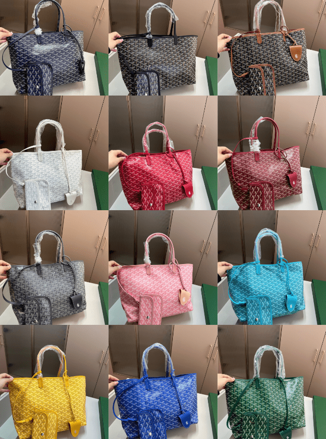 This Goyard Saint Louis tote bag collection showcases the brand’s signature chevron print, available in a spectrum of vibrant hues. Crafted with exceptional artisanal skill, it features a spacious interior, detachable pouch, and adaptable carrying options. Embodying Goyard’s heritage of timeless luxury and functional elegance, these totes merge distinctive design with everyday practicality. Perfect for those who value iconic branding, unique print variations, and multi-purpose utility, they make a sophisticated statement suitable for any occasion, from daily errands to refined outings.