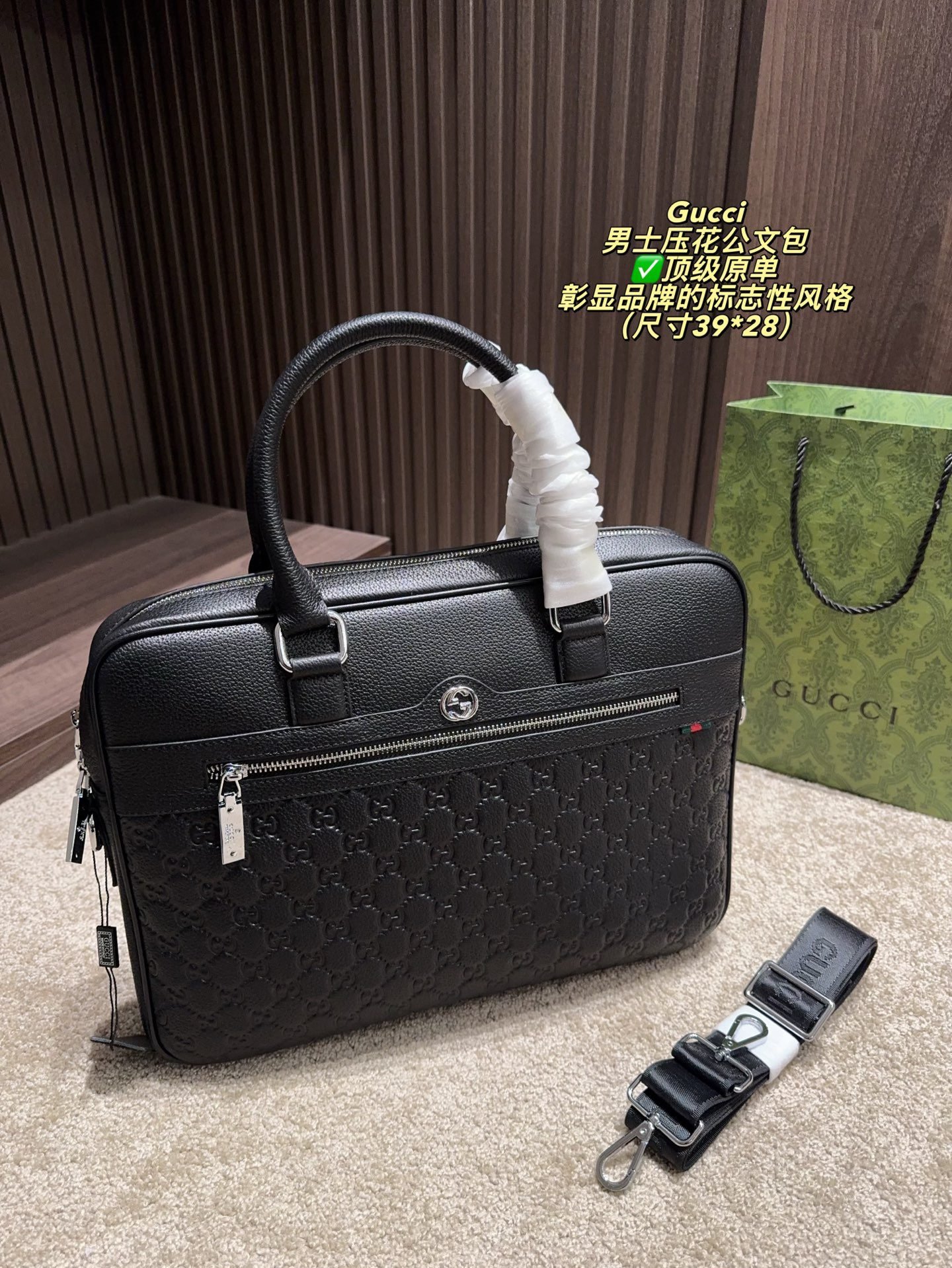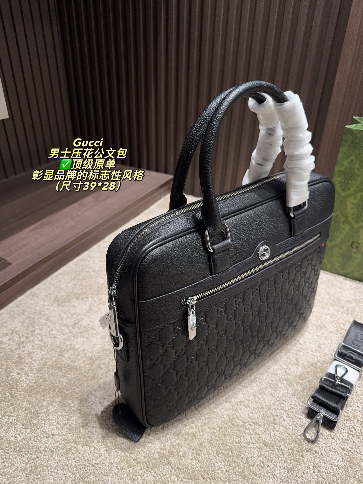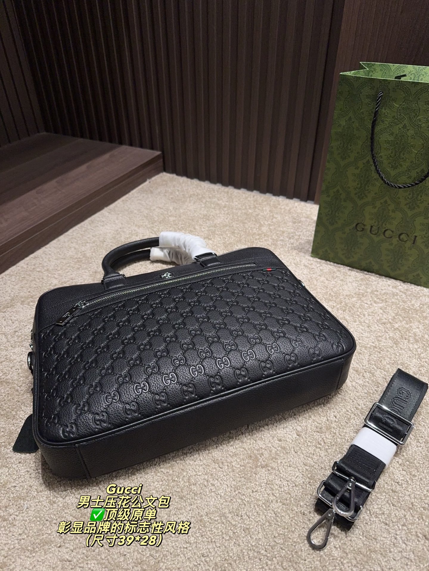 Be the first to review “GUCCI Structured Briefcase: Signature Chevron Print with Professional Elegance (38×27cm)” Cancel reply