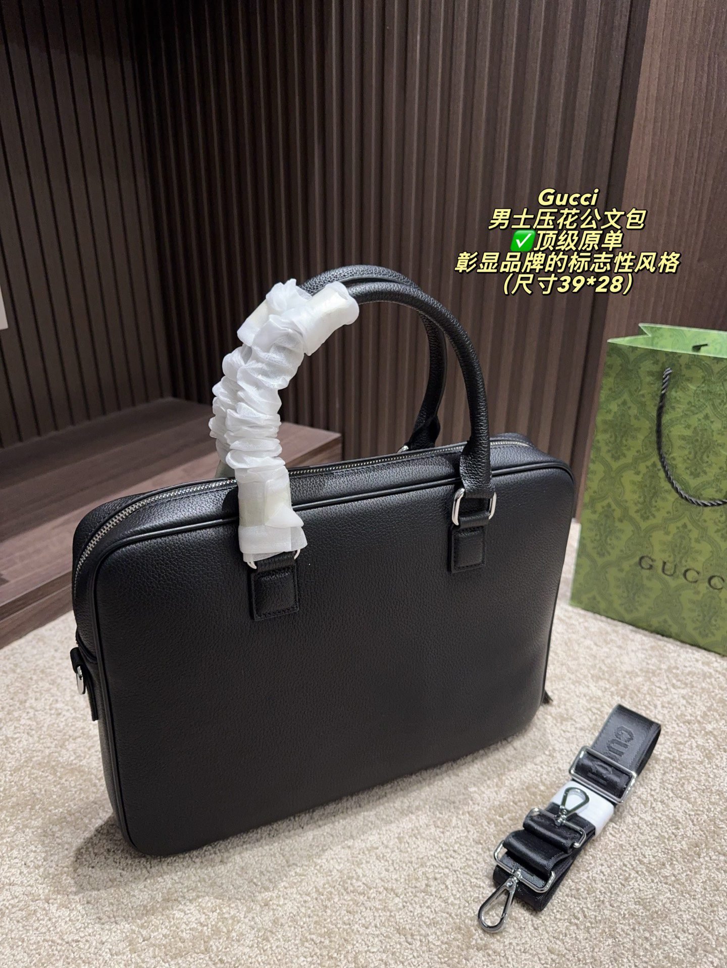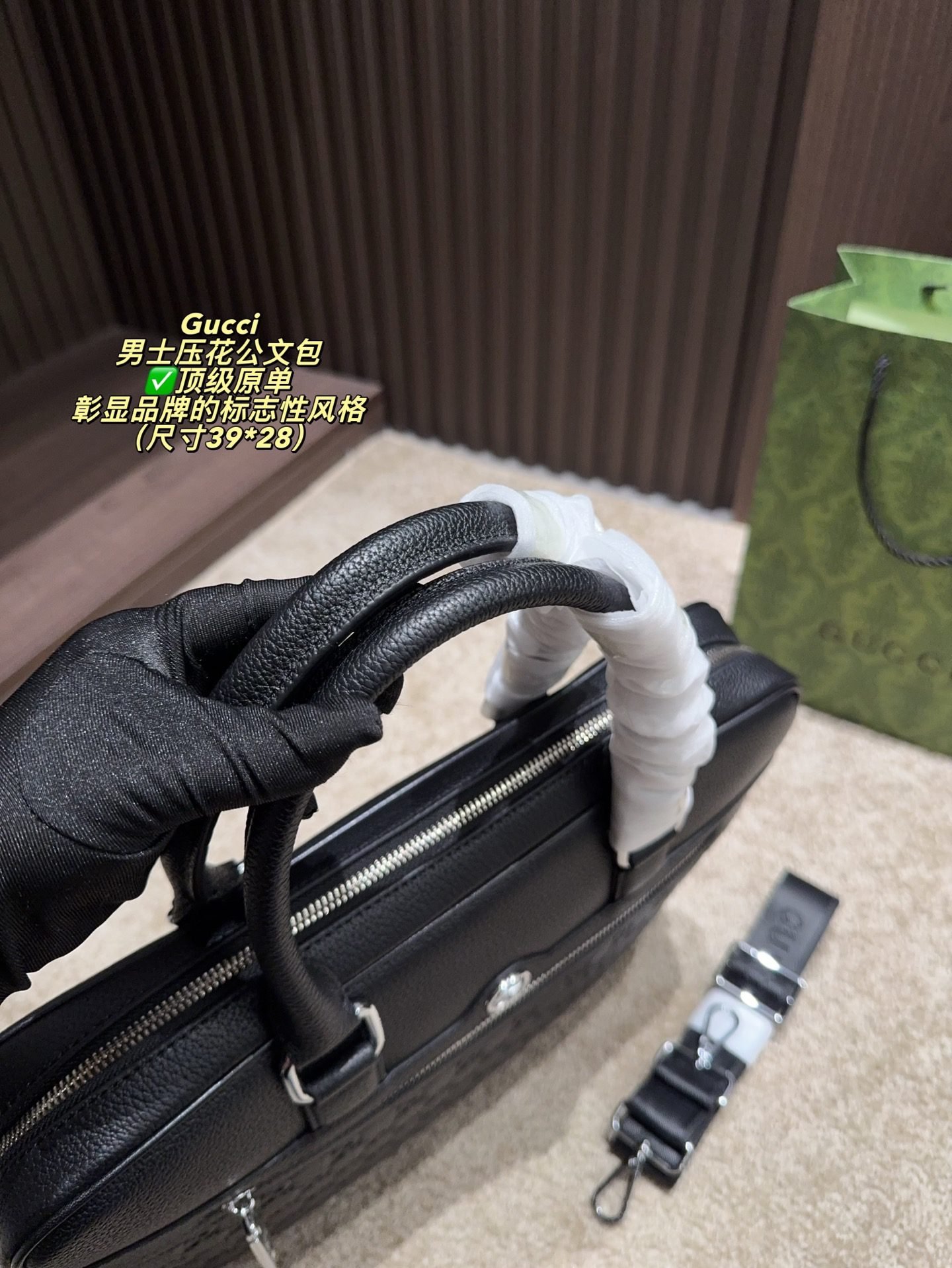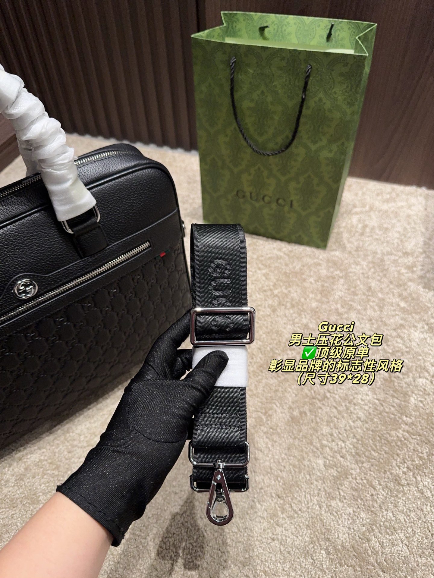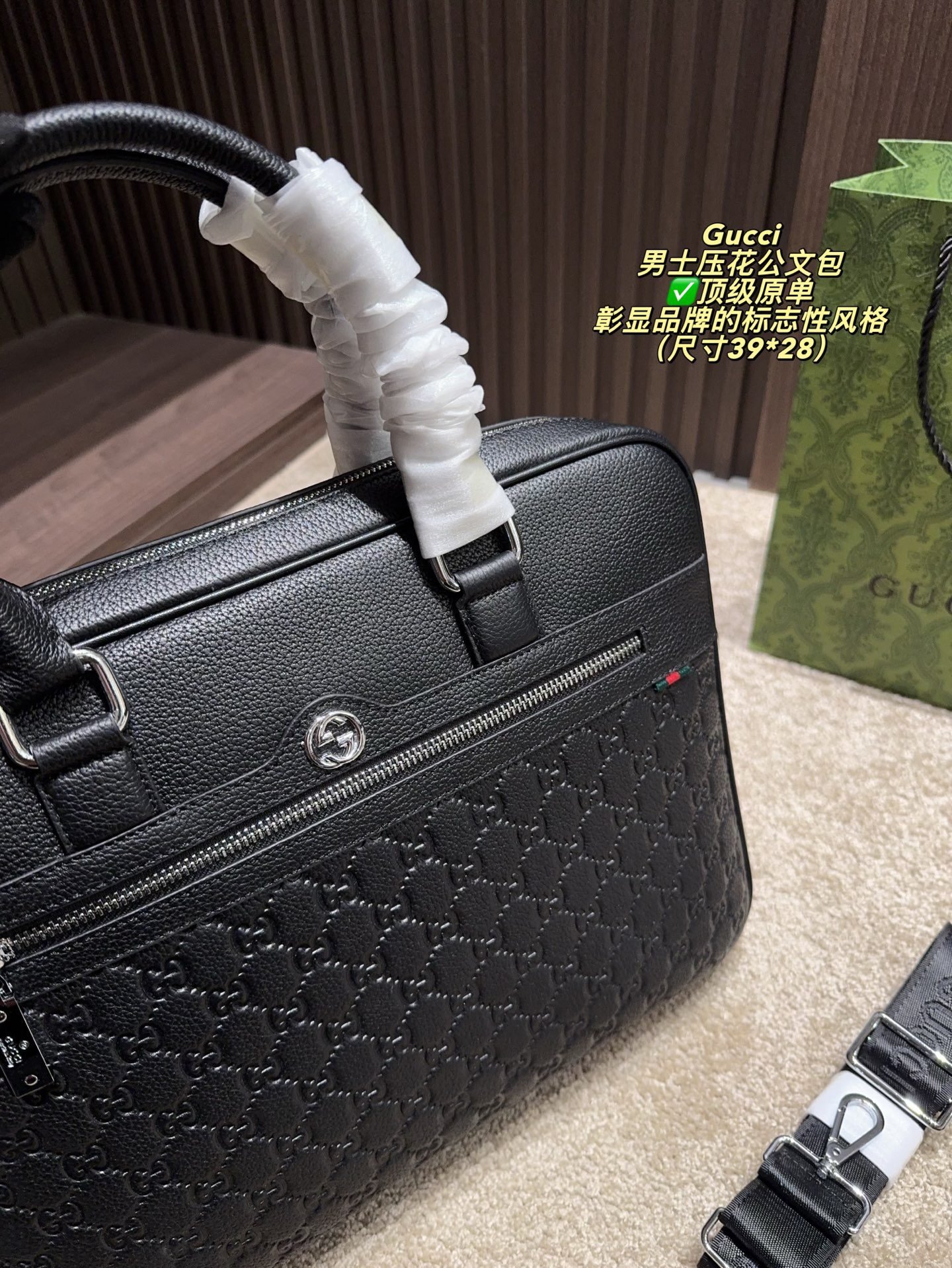 Be the first to review “GUCCI Structured Briefcase: Signature Chevron Print with Professional Elegance (38×27cm)” Cancel reply