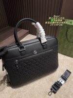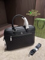 This GUCCI structured briefcase showcases the brand’s iconic chevron print, crafted with meticulous artisanal skill, featuring a professional silhouette of 38×27cm. Embodying Goyard’s legacy of timeless luxury and functional design, it comes with dual top handles and an adjustable shoulder strap for versatile carrying. Ideal for those who value iconic branding, meticulous craftsmanship, and ample storage for work essentials, this briefcase makes a sophisticated statement suitable for professional settings or business travel.