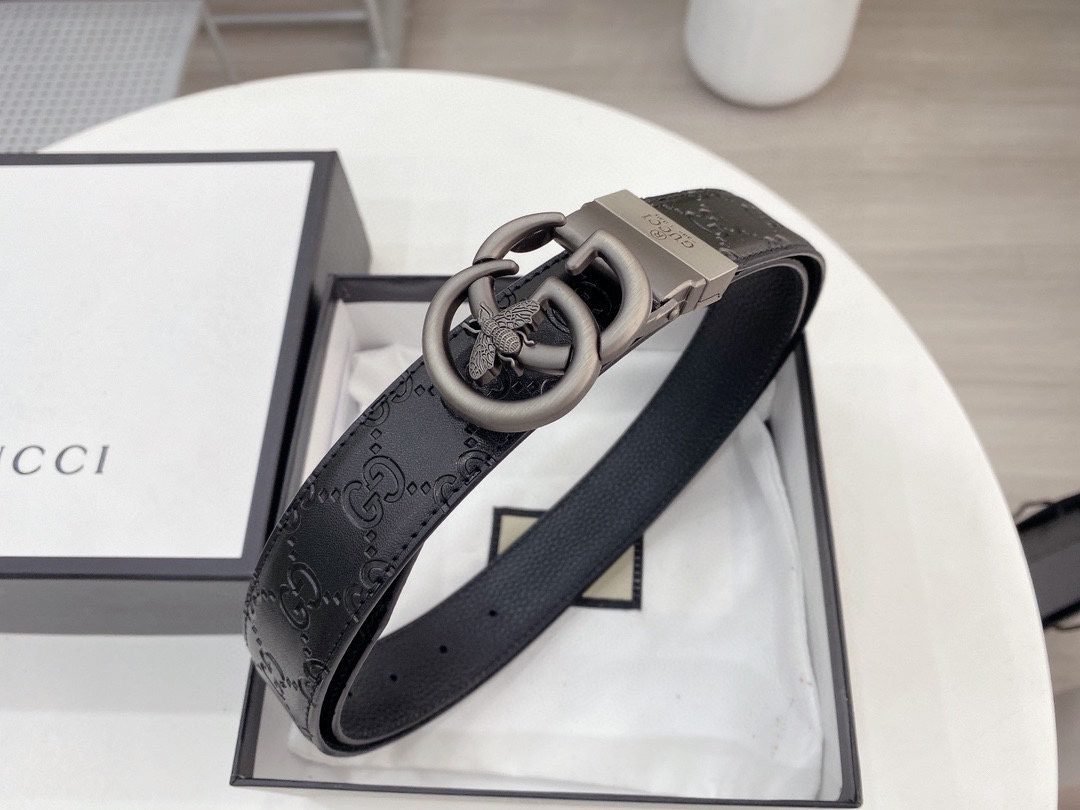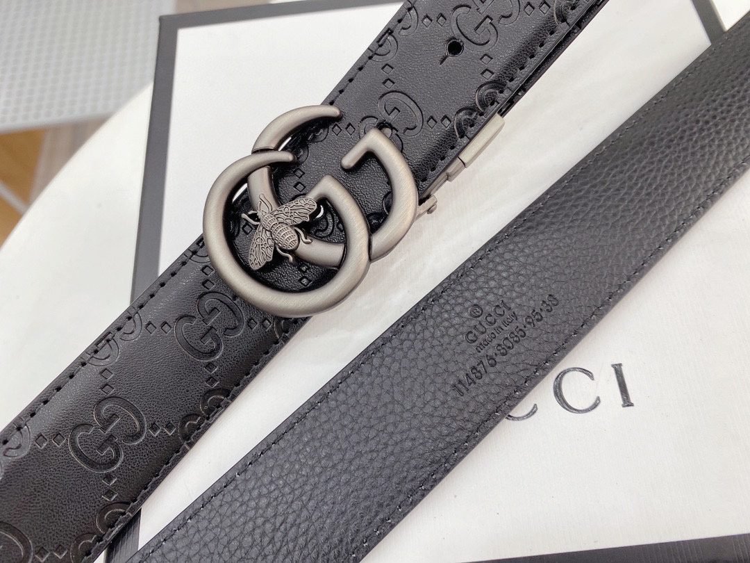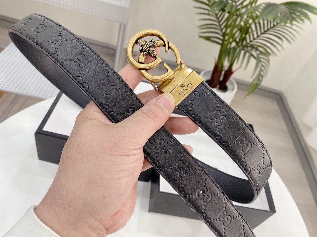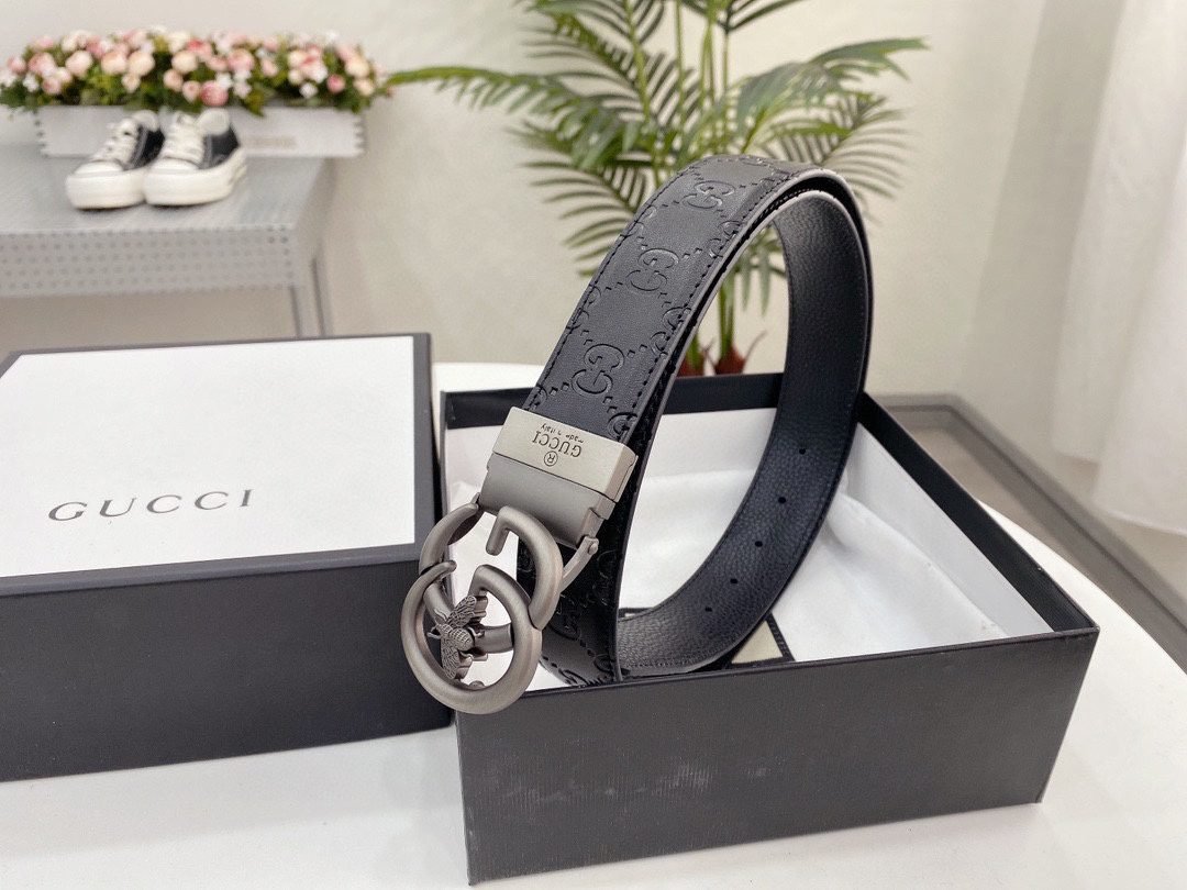 This Gucci Bee Double G black textured belt demonstrates unparalleled luxury and taste with its unique texture and exquisite craftsmanship. It is made of top-grade leather material and has undergone special processing to make the surface of the belt show a natural and smooth texture, which is soft and elastic to the touch. The belt buckle adopts a delicate metal design and is matched with the iconic double G logo of the Gucci brand, which is simple yet elegant. Add a touch of fashion to the wearer.