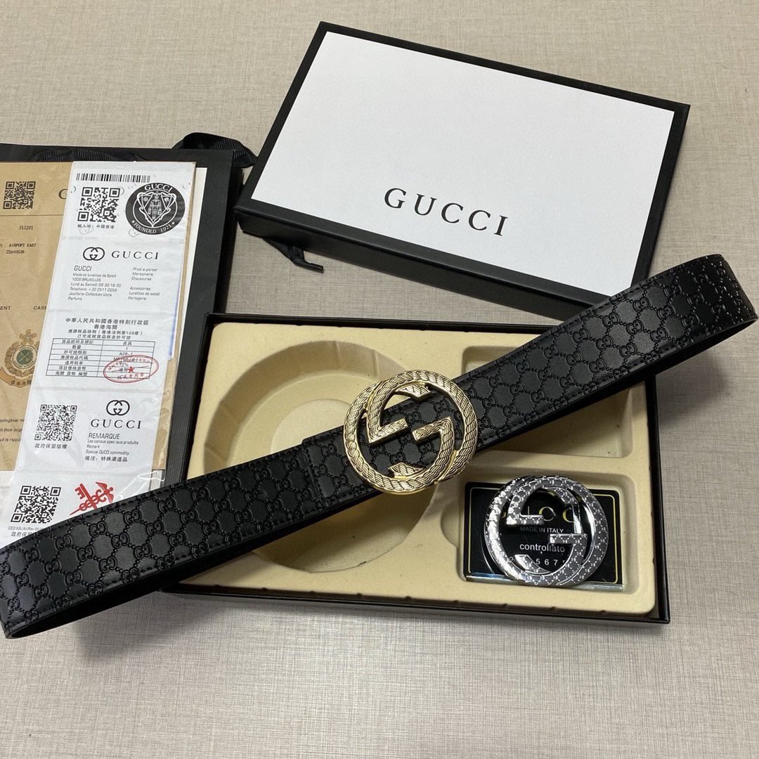 Gucci belt, classic black belt, silver buckle, thick to the touch, ultra-clear printed pattern