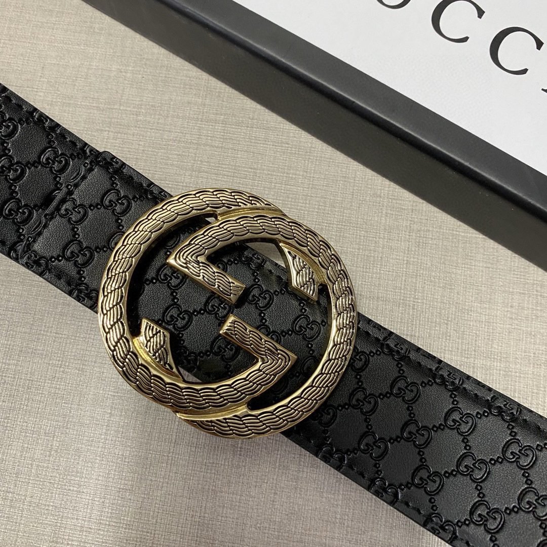 Home Belt GUCCI Belt Gucci belt black classic double G buckle belt gold buckle detailed oil edge