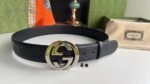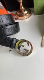 Gucci’s classic black gold belt has a simple yet elegant design style, perfectly integrating the brand’s luxury and fashion. The belt is made of high-quality leather, which is soft and delicate to the touch and has good durability. The metal buckle adopts a unique black and gold color scheme, showing its noble temperament, and the “Gucci” logo inlaid in the middle is a symbol of the brand.