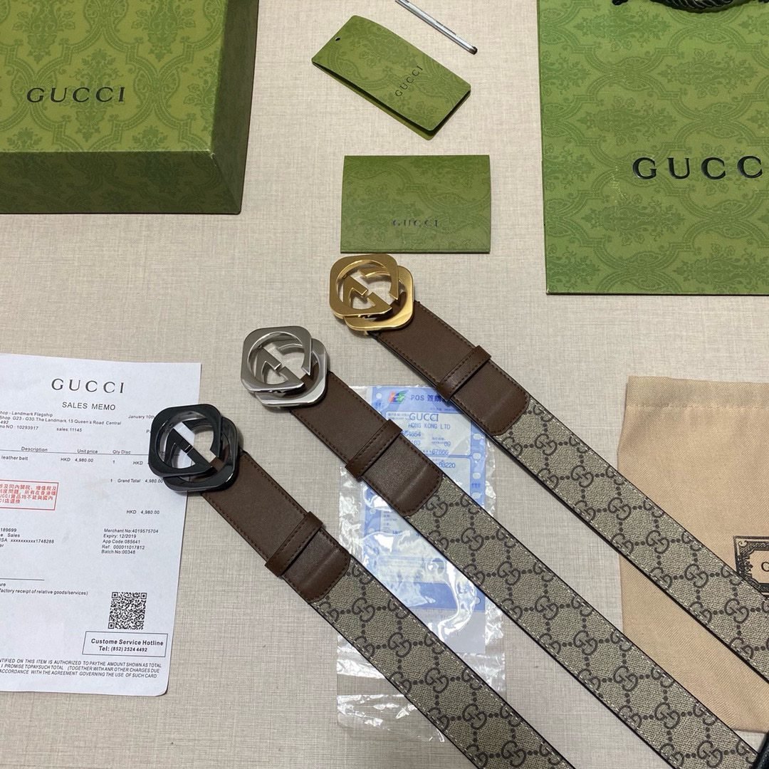 The Gucci brown and beige belt is made of high-quality leather, which is soft and elastic to ensure wearing comfort. The belt design is simple yet elegant, and the interweaving of brown and beige shows a low-key sense of luxury. The gold buckle on the belt is the brand’s signature design, highlighting Gucci’s exquisite craftsmanship and superior quality.