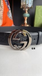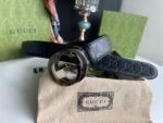 Gucci’s classic black gold belt has a simple yet elegant design style, perfectly integrating the brand’s luxury and fashion. The belt is made of high-quality leather, which is soft and delicate to the touch and has good durability. The metal buckle adopts a unique black and gold color scheme, showing its noble temperament, and the “Gucci” logo inlaid in the middle is a symbol of the brand.
