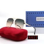 This pair of sunglasses features a unique design that combines square and rounded corners, showcasing the brand’s consistent delicacy and delicacy, while also exuding a soft yet resilient aesthetic. The classic double G logo of GUCCI is cleverly embedded on the frame, highlighting the brand’s nobility and uniqueness. The frame is made of high-quality metal material, which is lightweight and sturdy, comfortable to wear, and durable. Suitable for various occasions, whether for leisure vacation or business travel, it can showcase your unique taste.