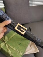 Be the first to review “Gucci black crocodile leather gold buckle luxury belt, soft to the touch, elastic and delicate texture” Cancel reply