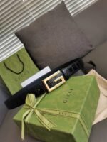Gucci fashionable new belt with black gold buckle, soft to the touch, elastic and with exquisite oil edges $210.00 Original price was: $210.00.$66.69Current price is: $66.69.