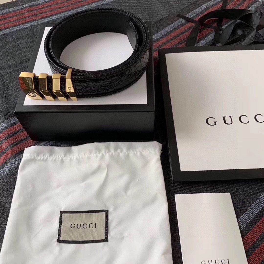 Gucci black crocodile pattern gold buckle belt, luxurious and refined, noble and elegant